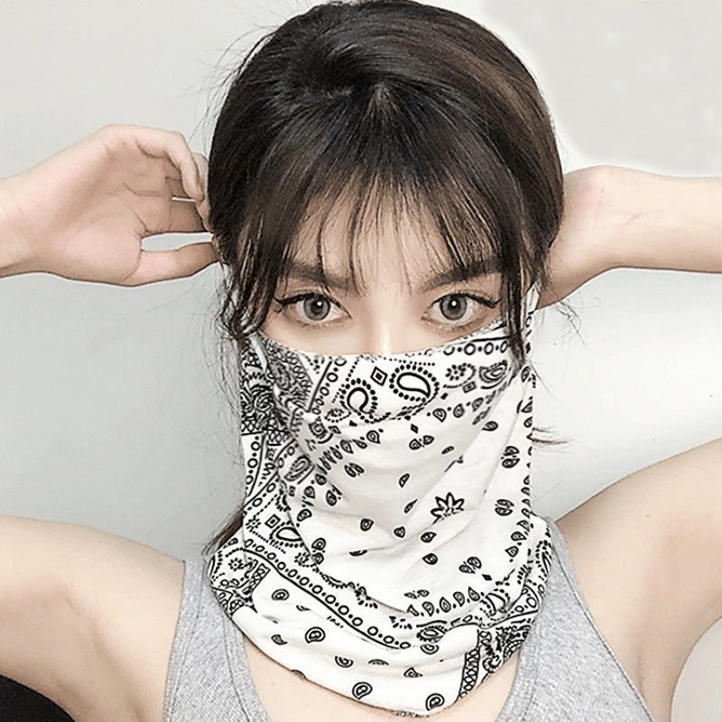 户外防风防晒冰丝口罩男女通用挂耳护颈骑行花纹面纱潮流护脸头巾