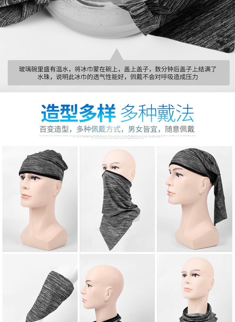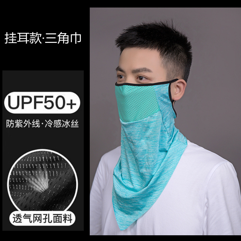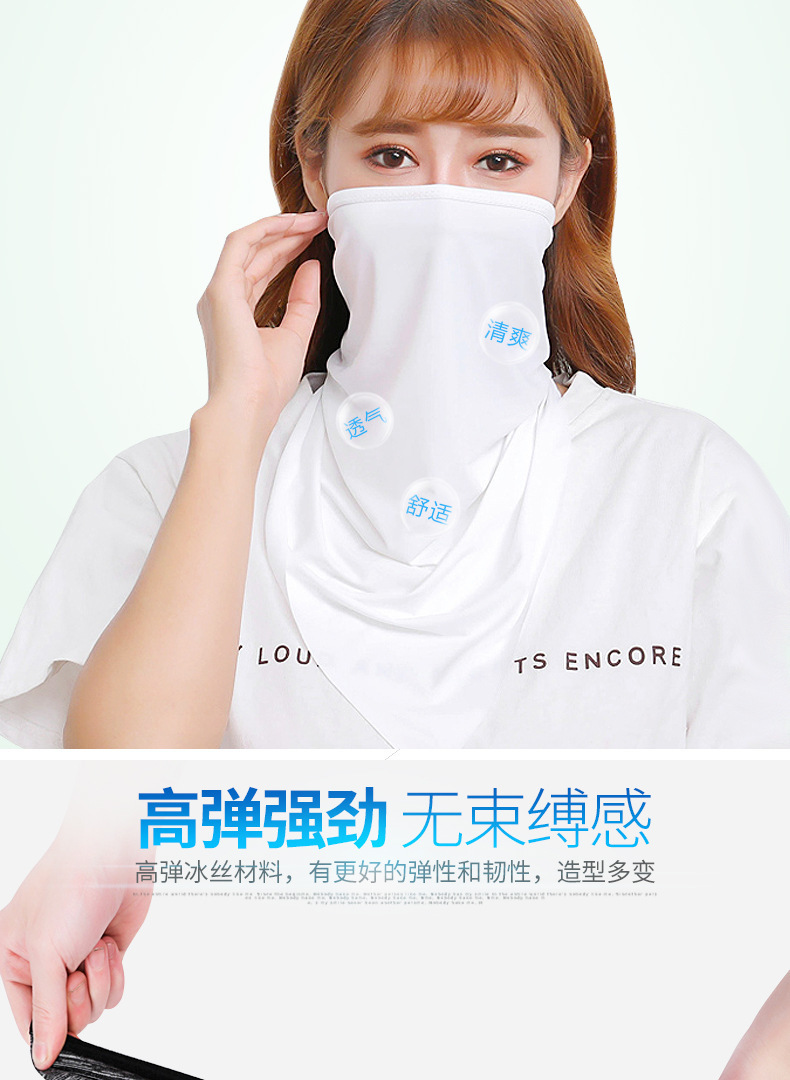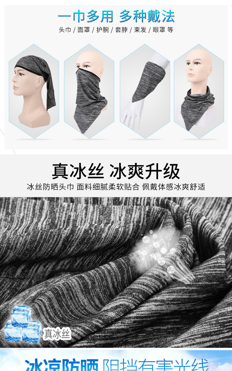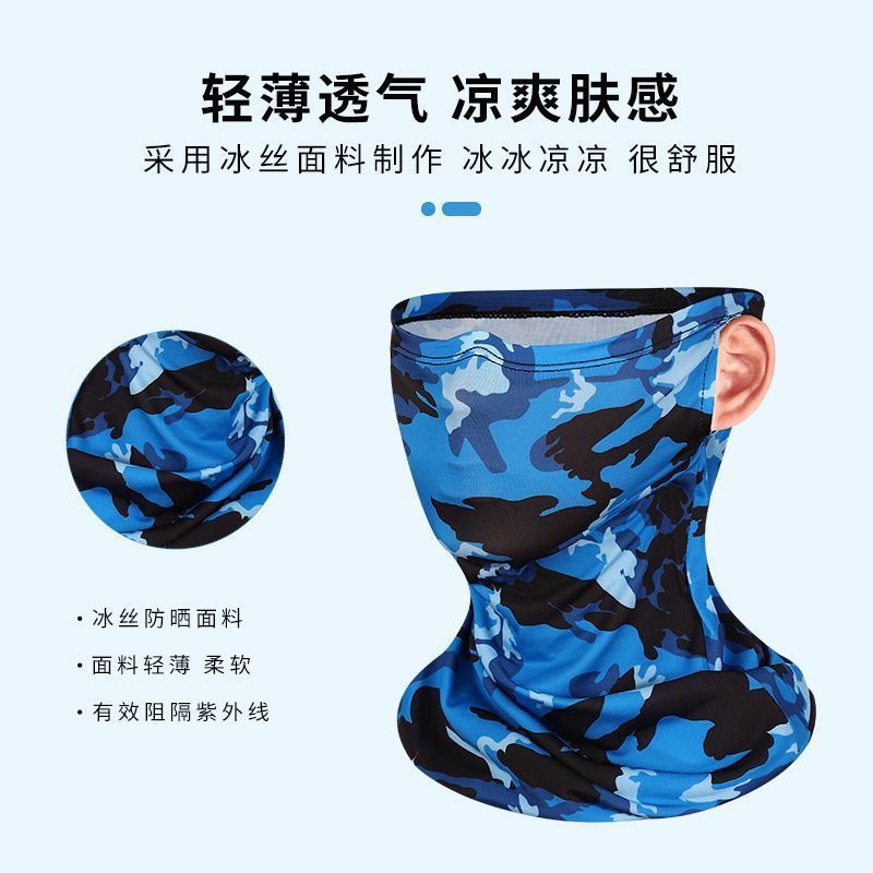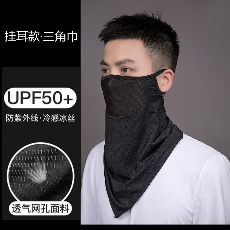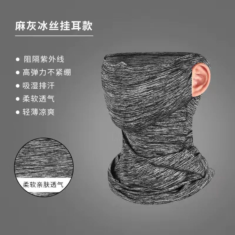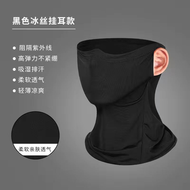 冰丝围脖户外防晒面罩面巾夏季薄款黑色挂耳头巾男女面纱防紫外线