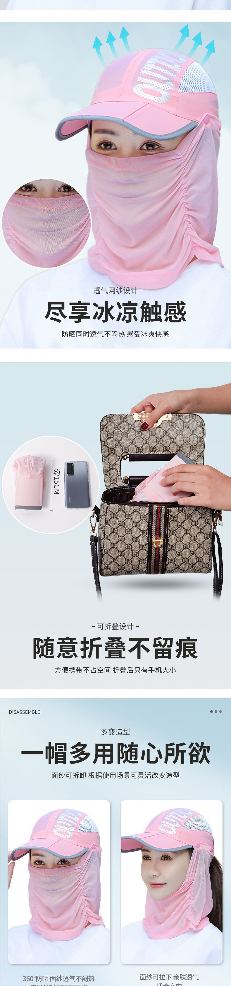帽子女夏季遮阳防晒帽速干面纱遮脸面罩防紫外线户外钓鱼干农活帽