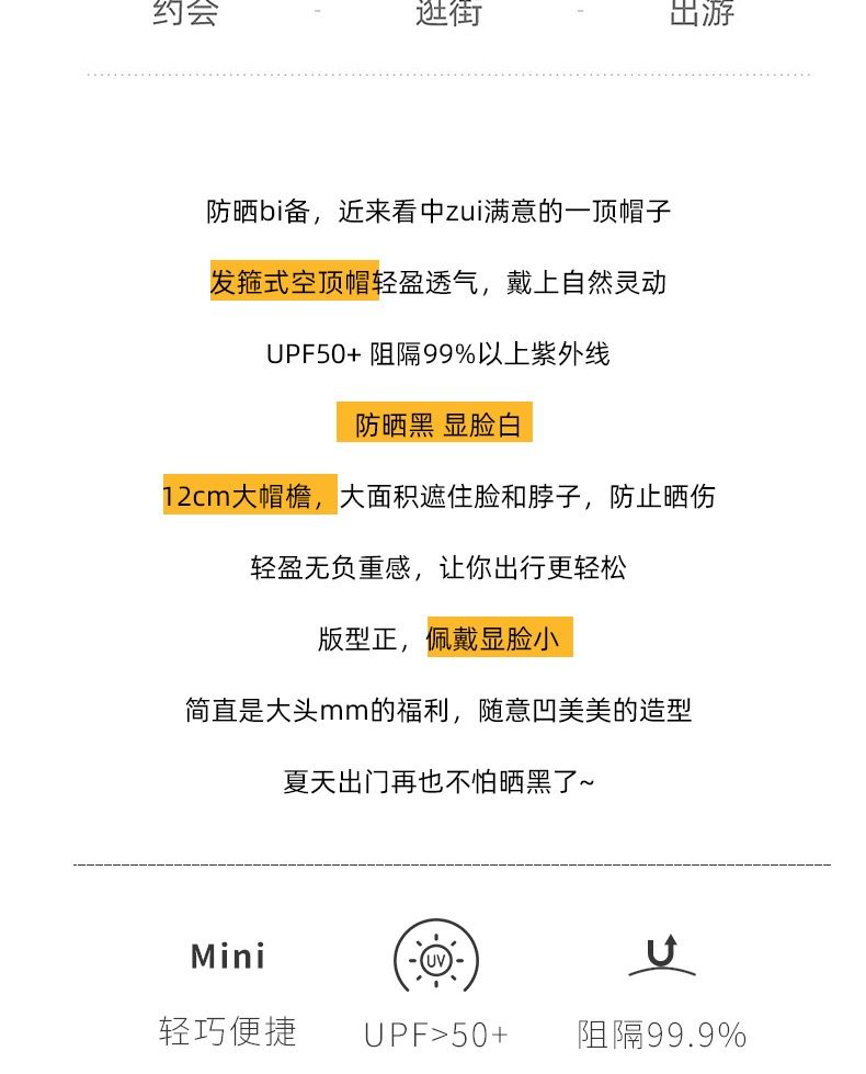 日本帽子女UV防紫外线骑车晚晚同款空顶遮脸太阳帽夏季遮阳帽