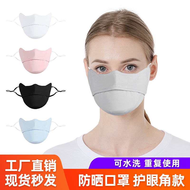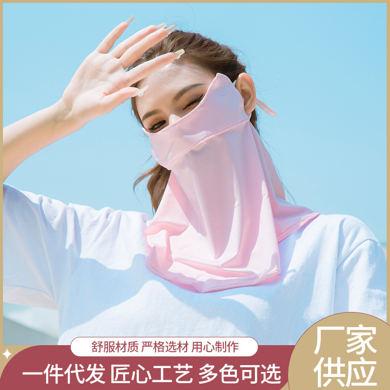 夏季防晒面罩女士透气遮阳防紫外线冰丝挂耳式护脖口罩头巾面纱