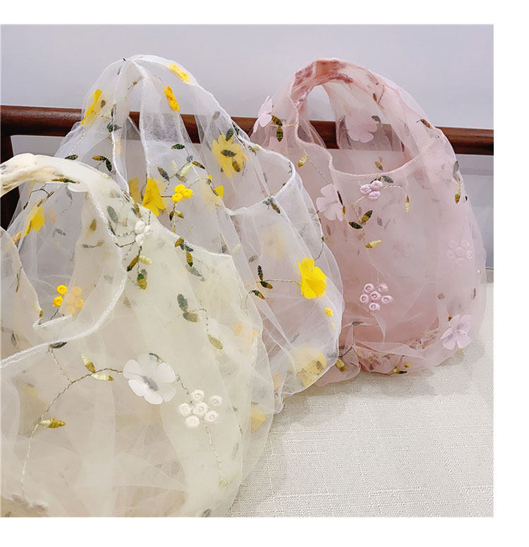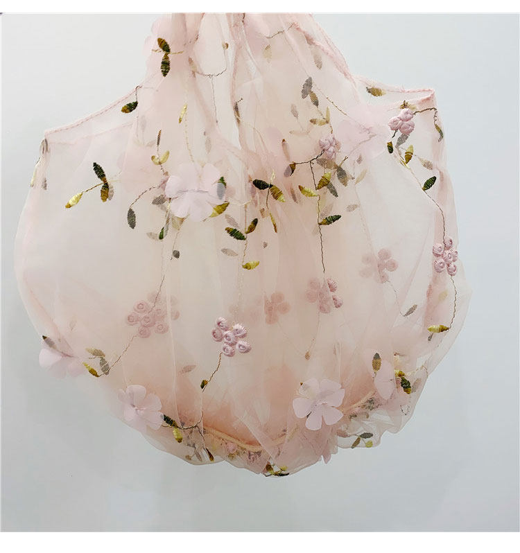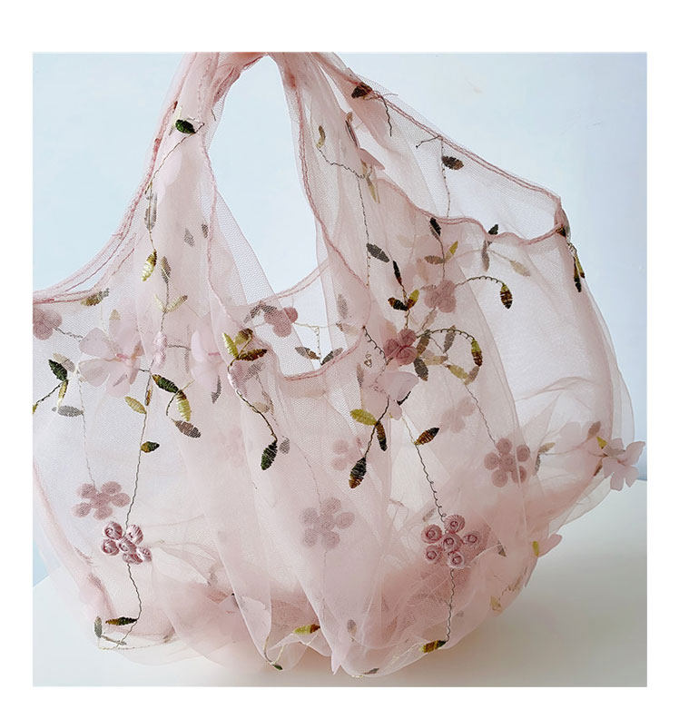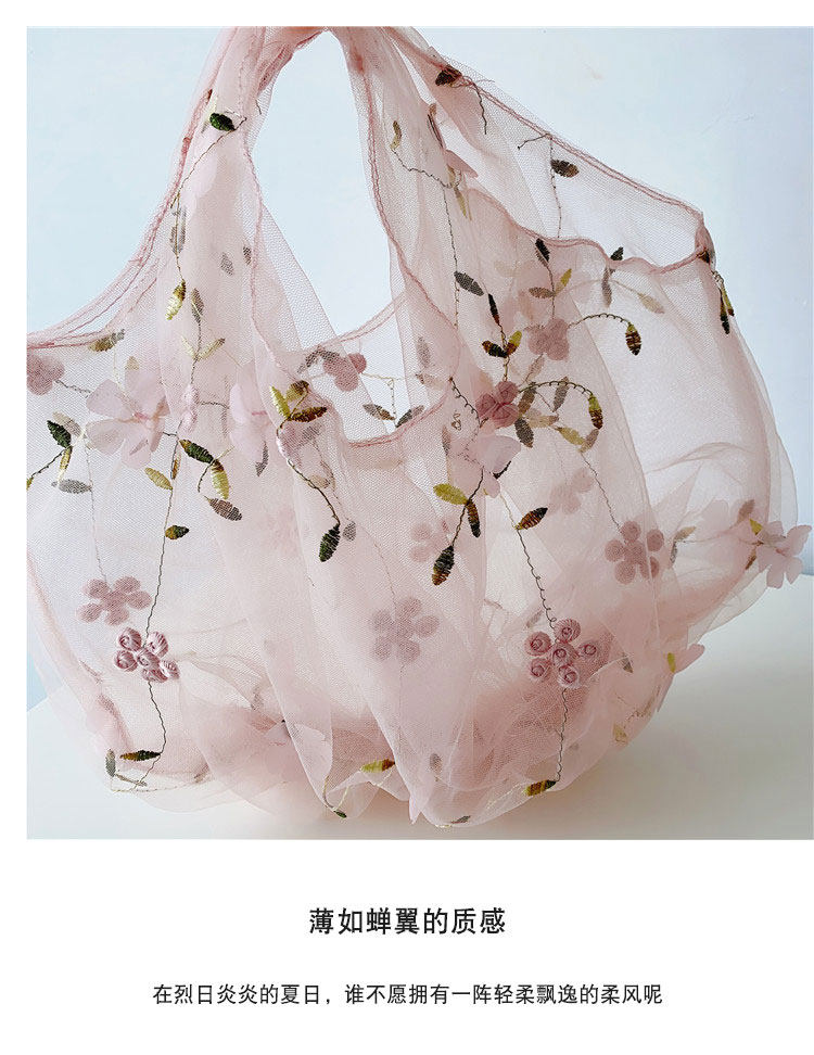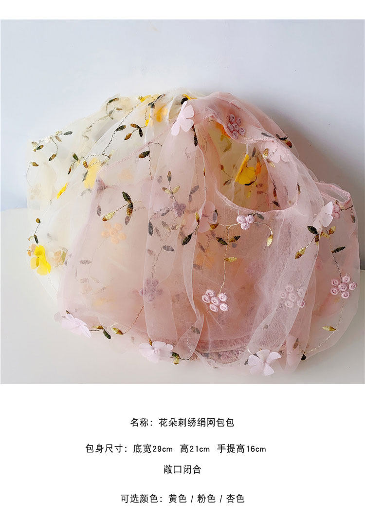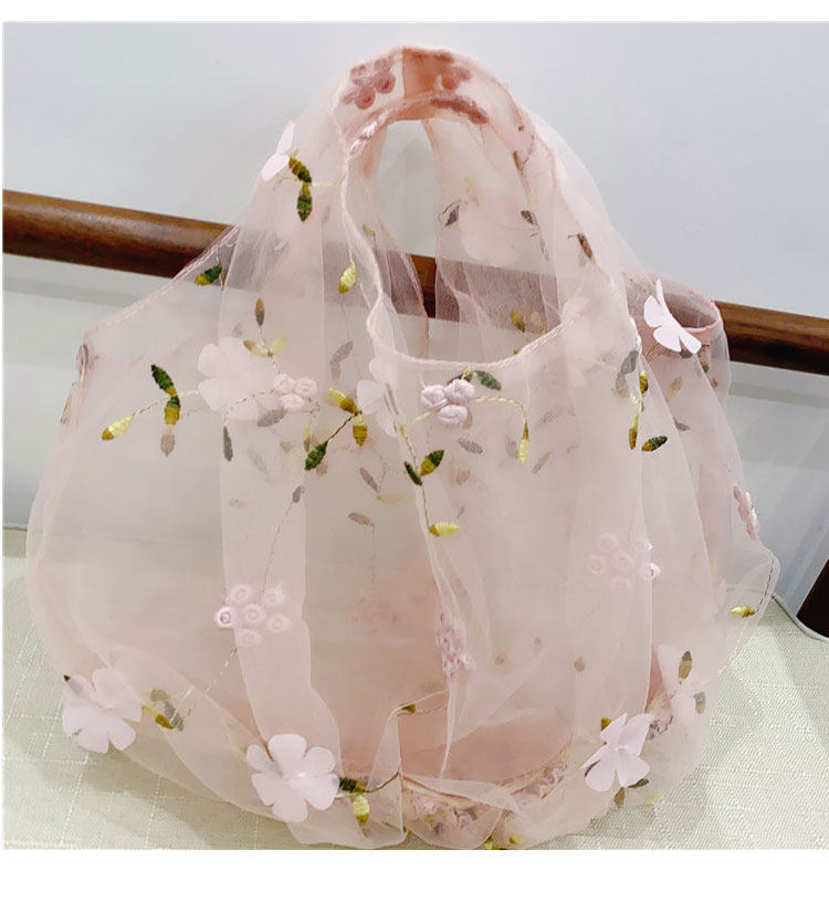 新款网纱刺绣花朵包包小清新百搭手提女包潮流甜美手拎袋布袋批发