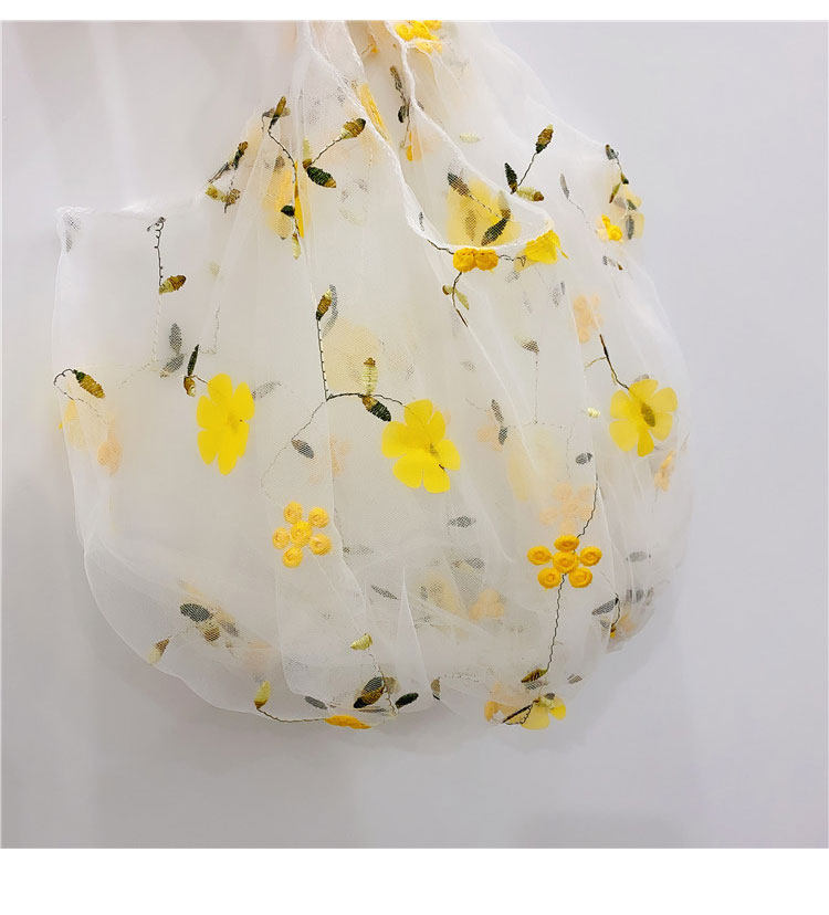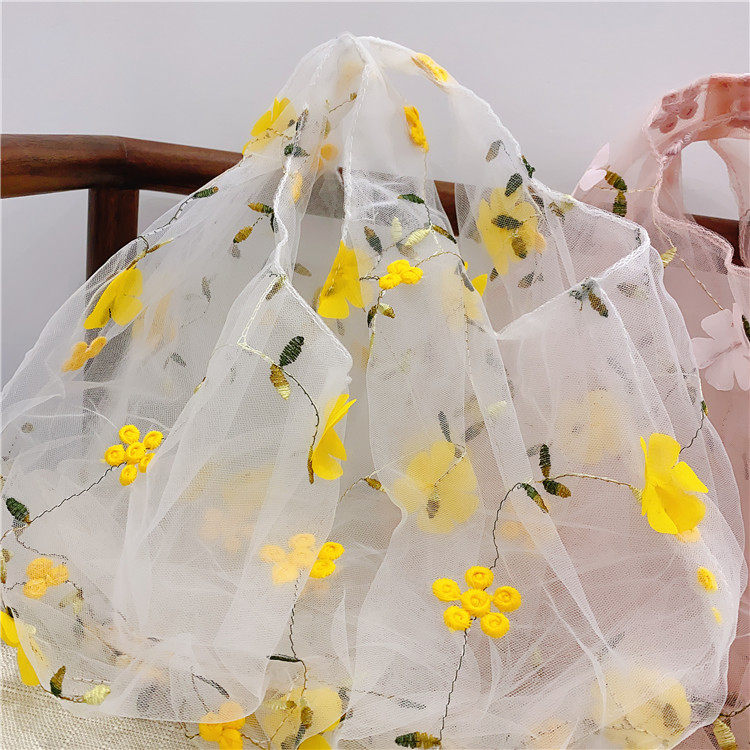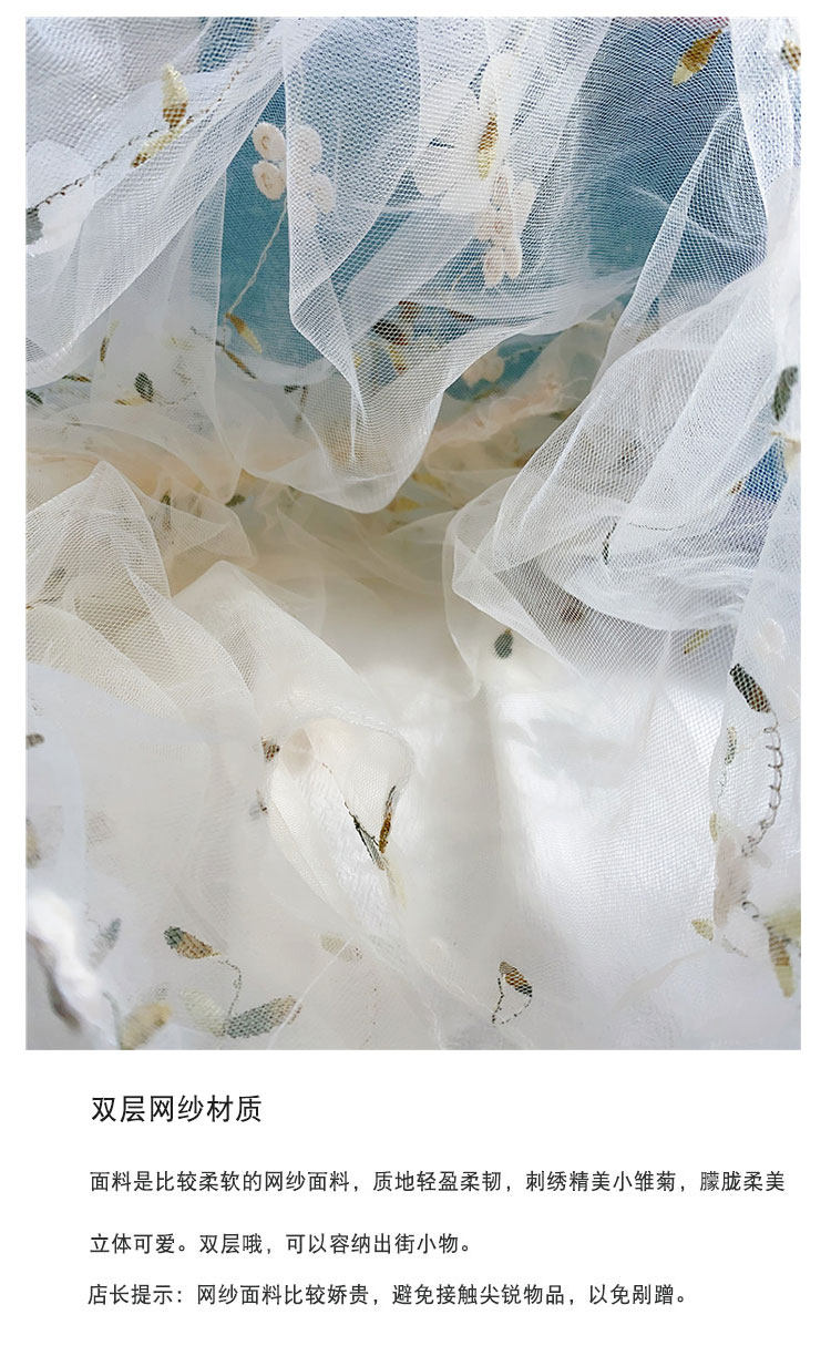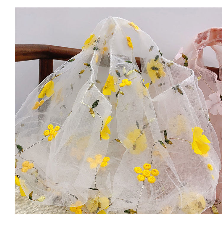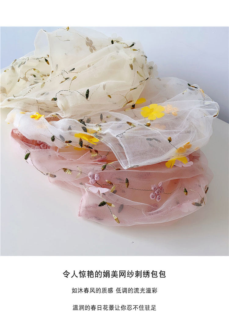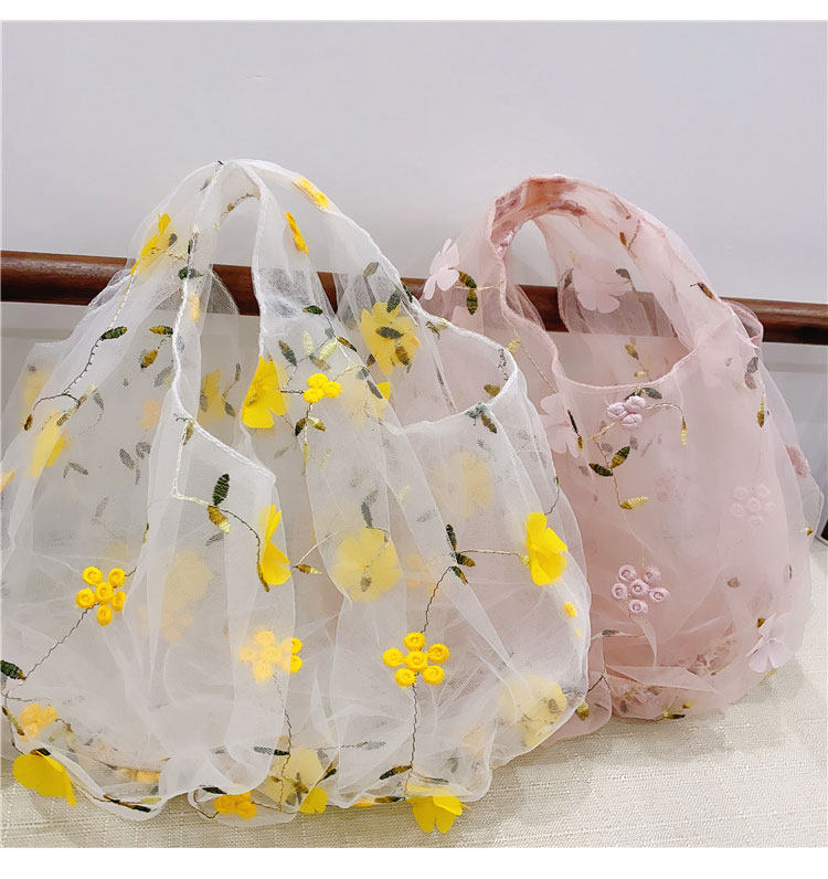新款网纱刺绣花朵包包小清新百搭手提女包潮流甜美手拎袋布袋批发