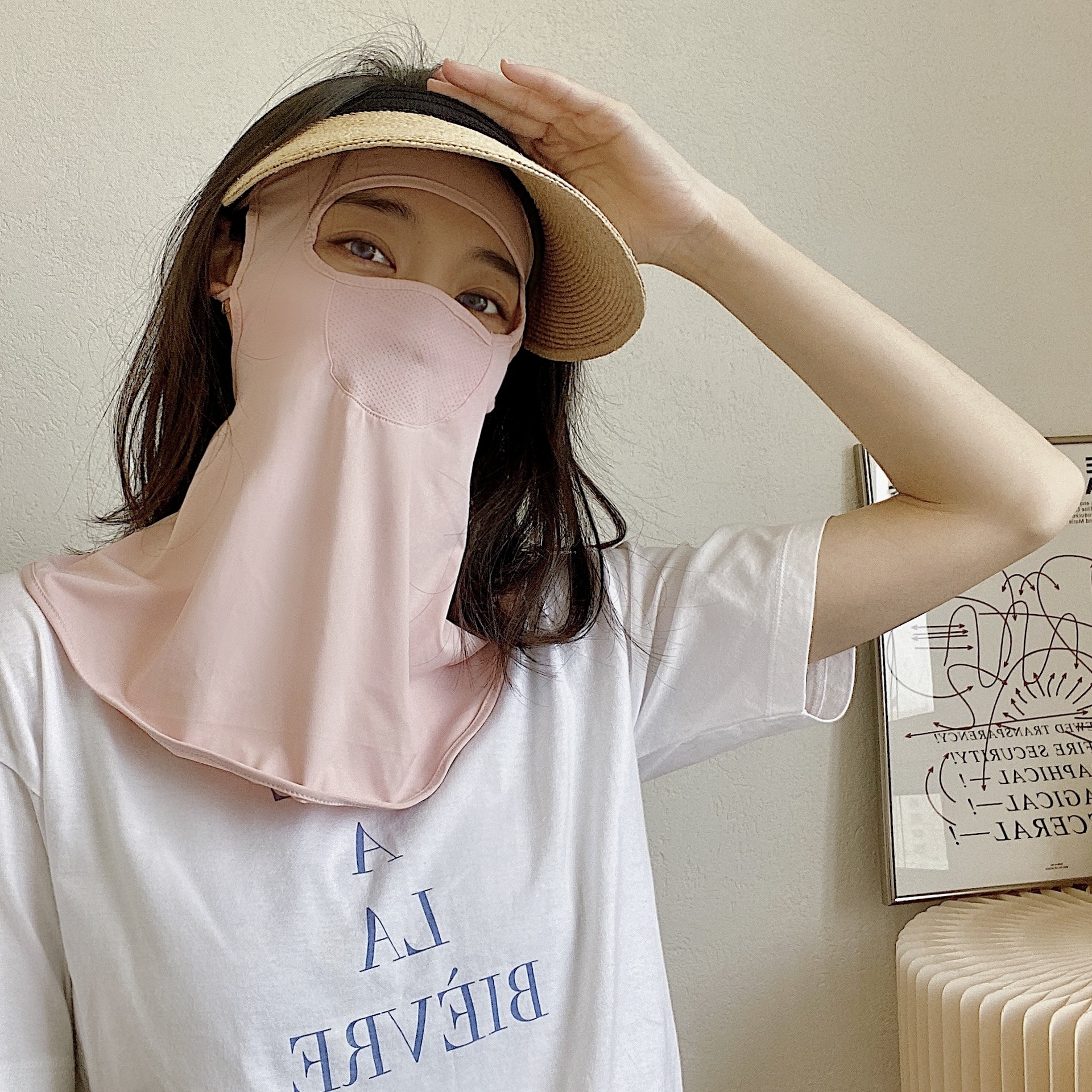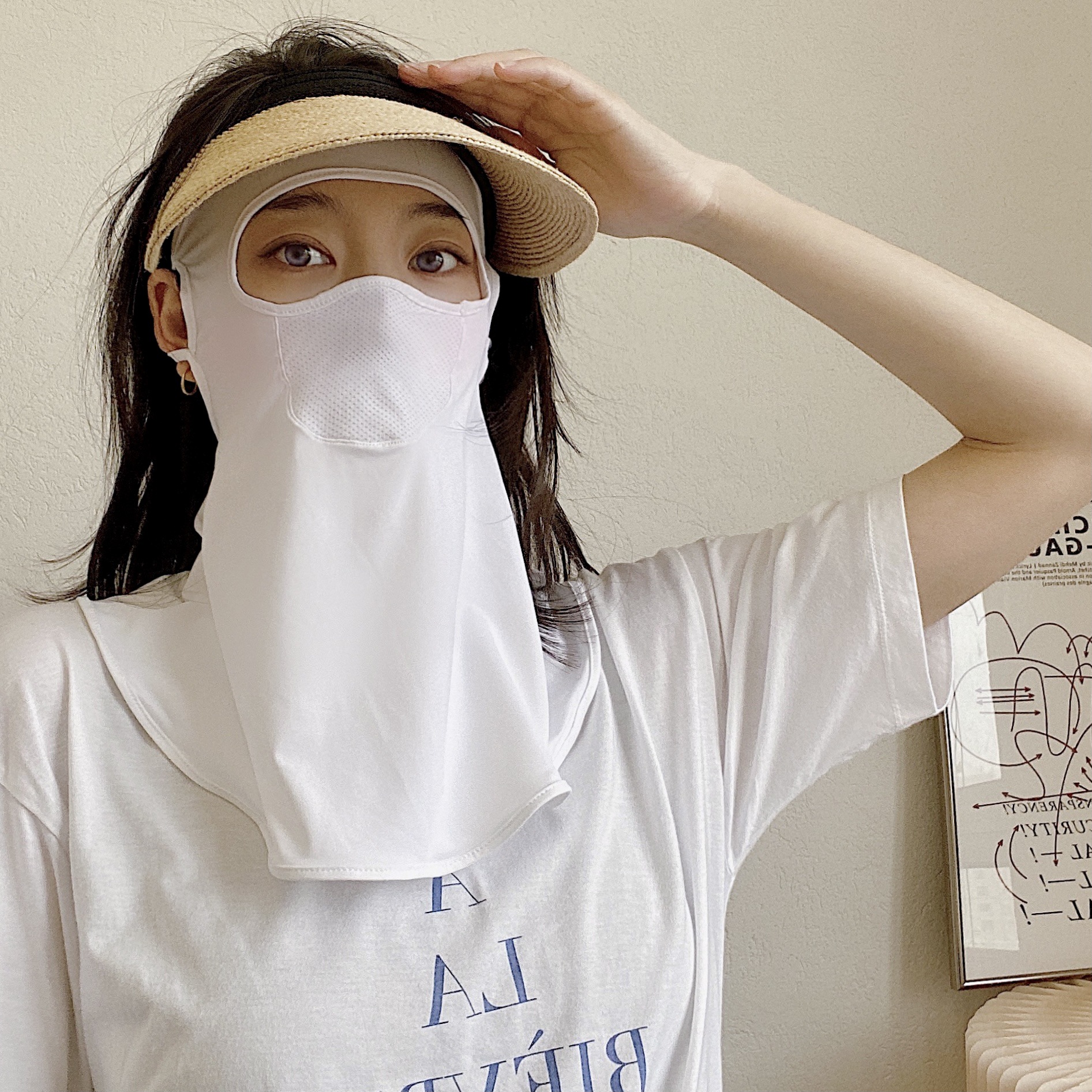 骑行开车遮阳防晒面纱冰丝护颈全脸防晒面罩立体冷感挂耳头巾防尘