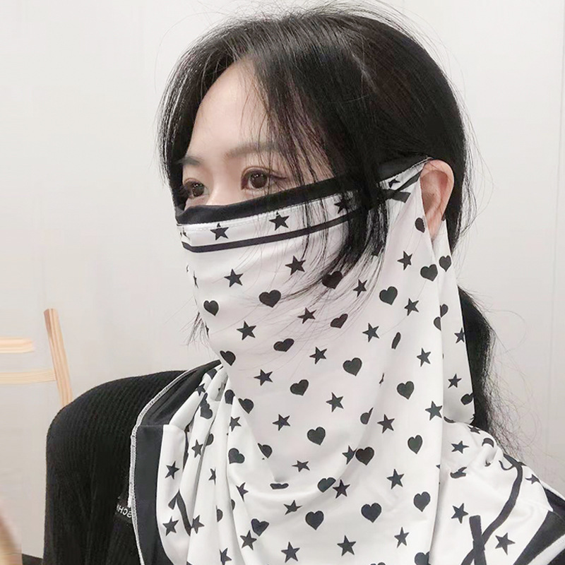 面罩全脸夏女开车薄款户外骑行遮阳挂耳冰丝面纱头巾