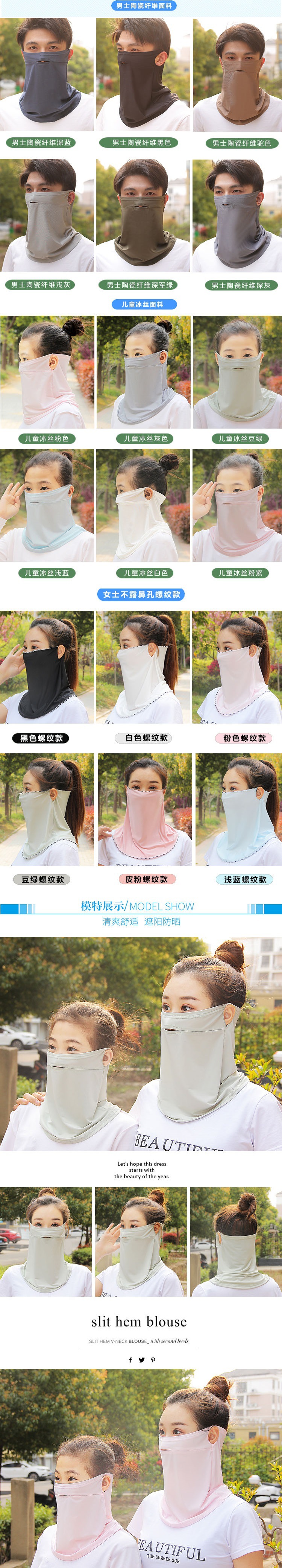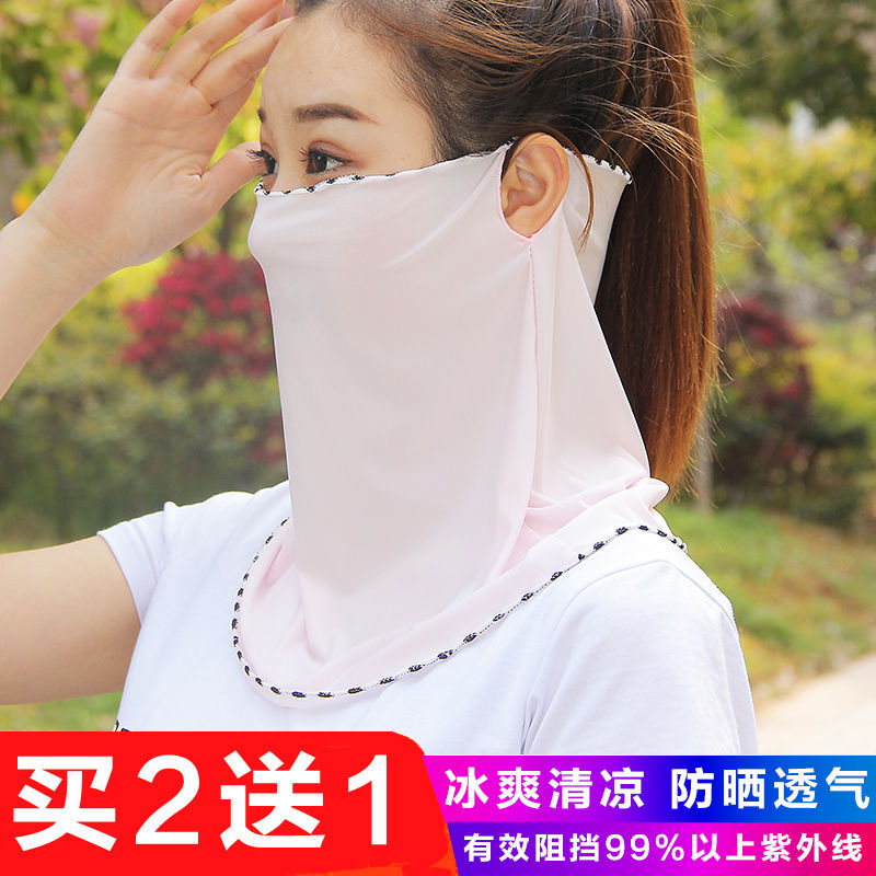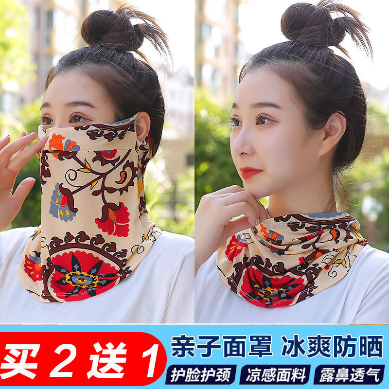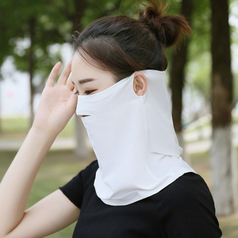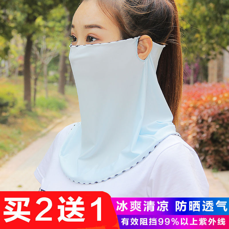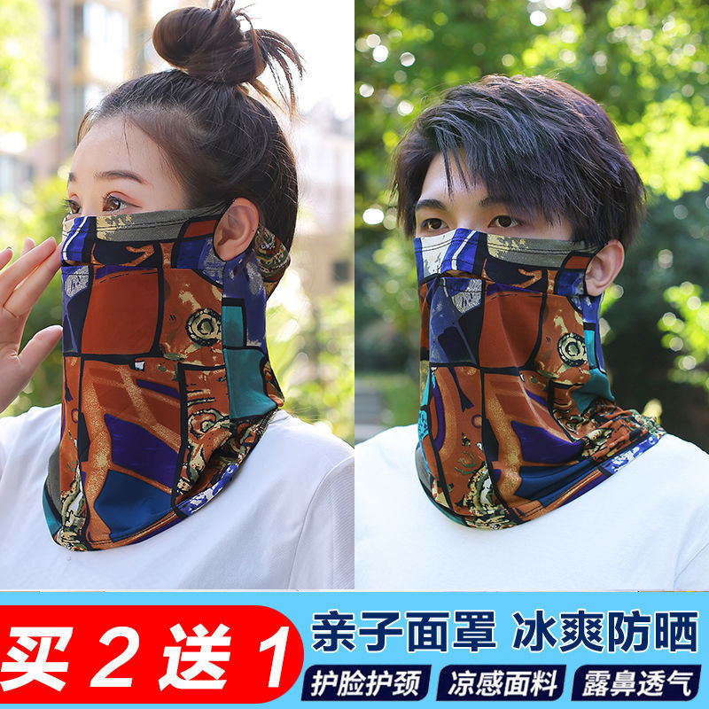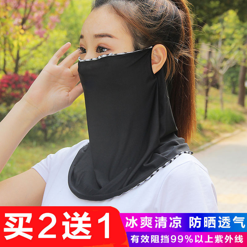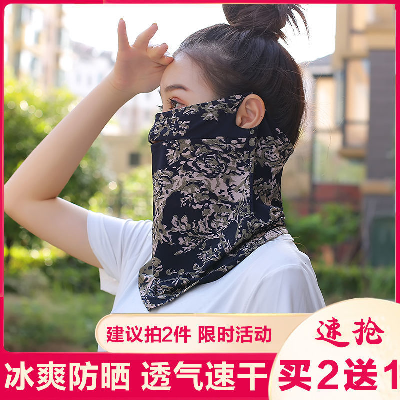 防晒面纱男女夏季遮全脸护颈户外骑车面罩挂耳小丝巾薄冰丝围脖子