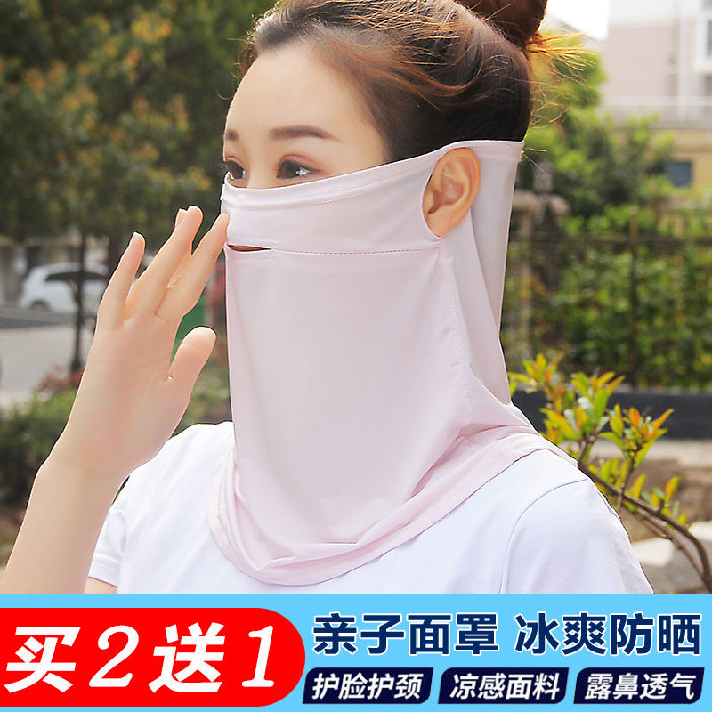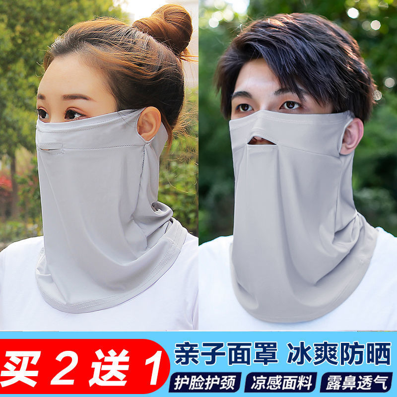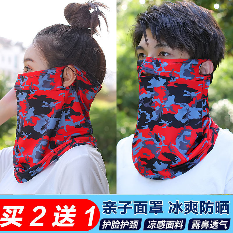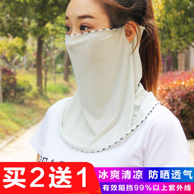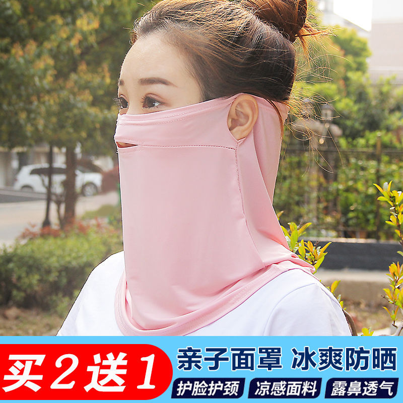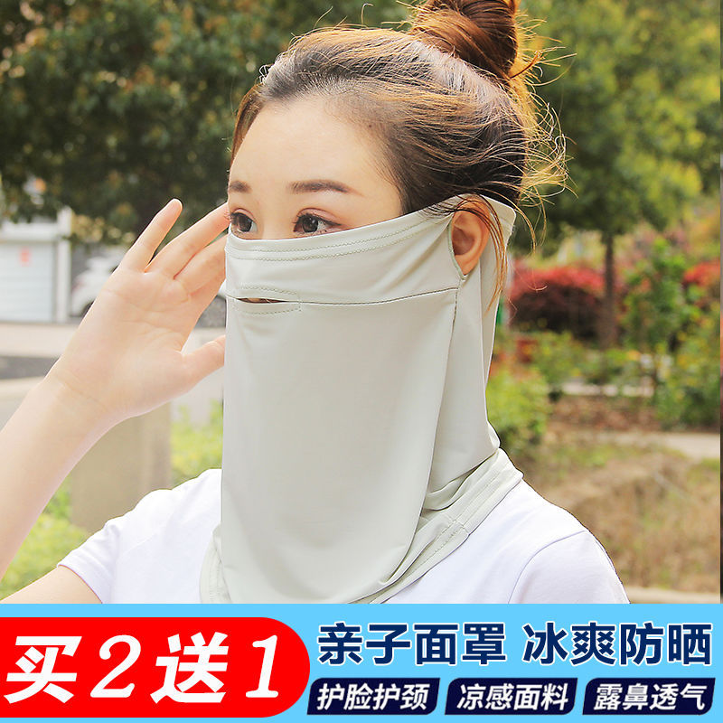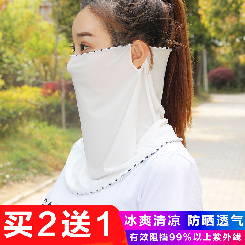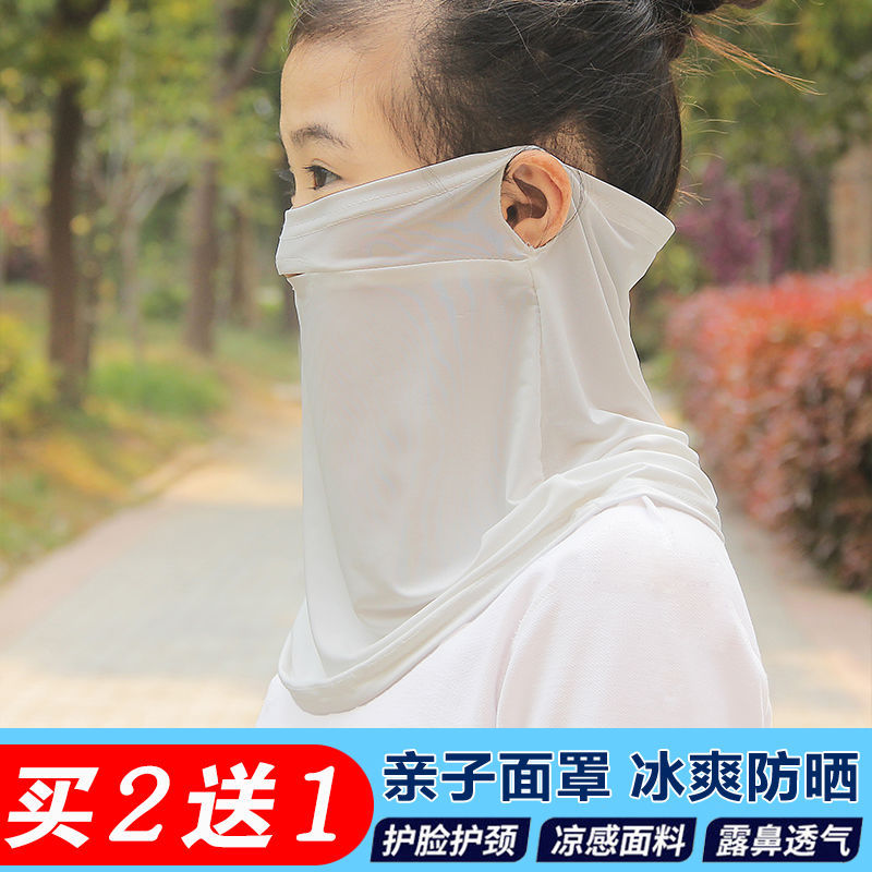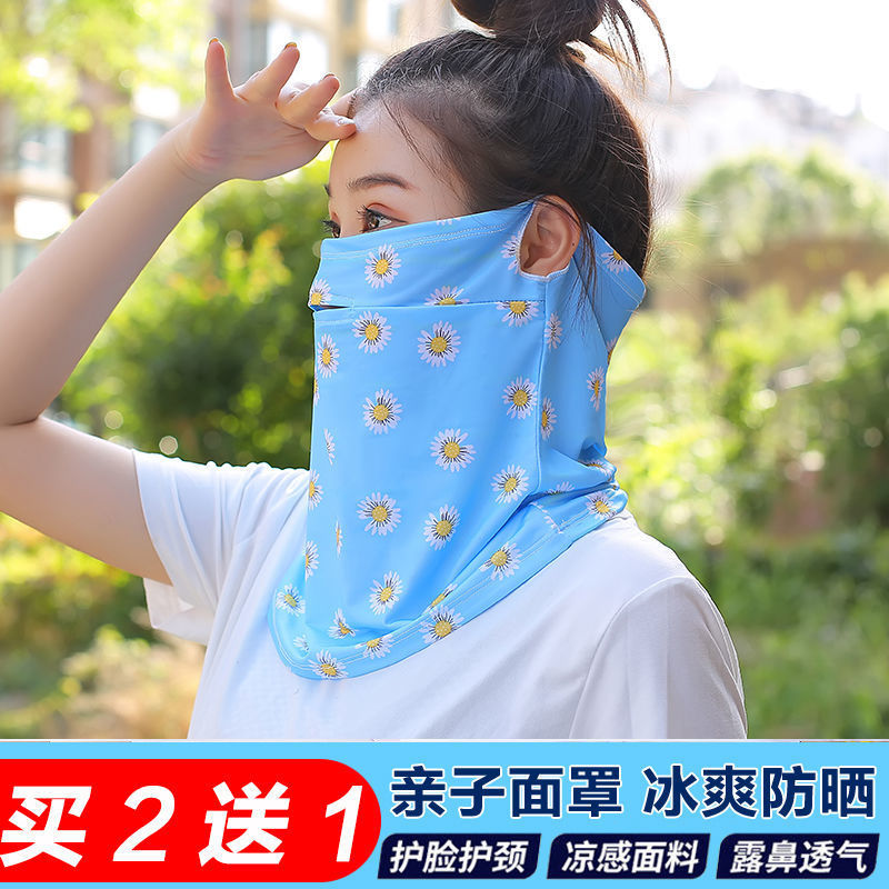 防晒面纱男女夏季遮全脸护颈户外骑车面罩挂耳小丝巾薄冰丝围脖子