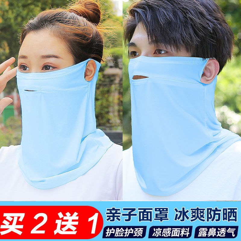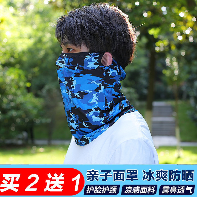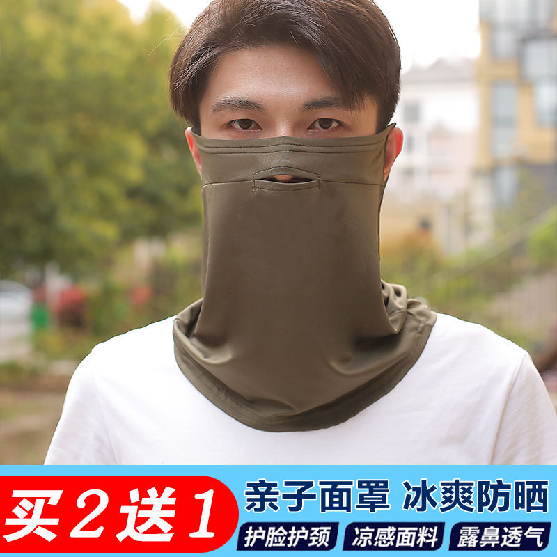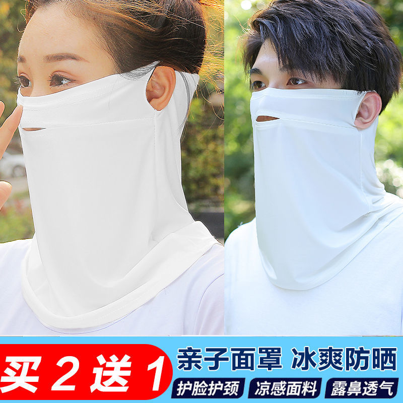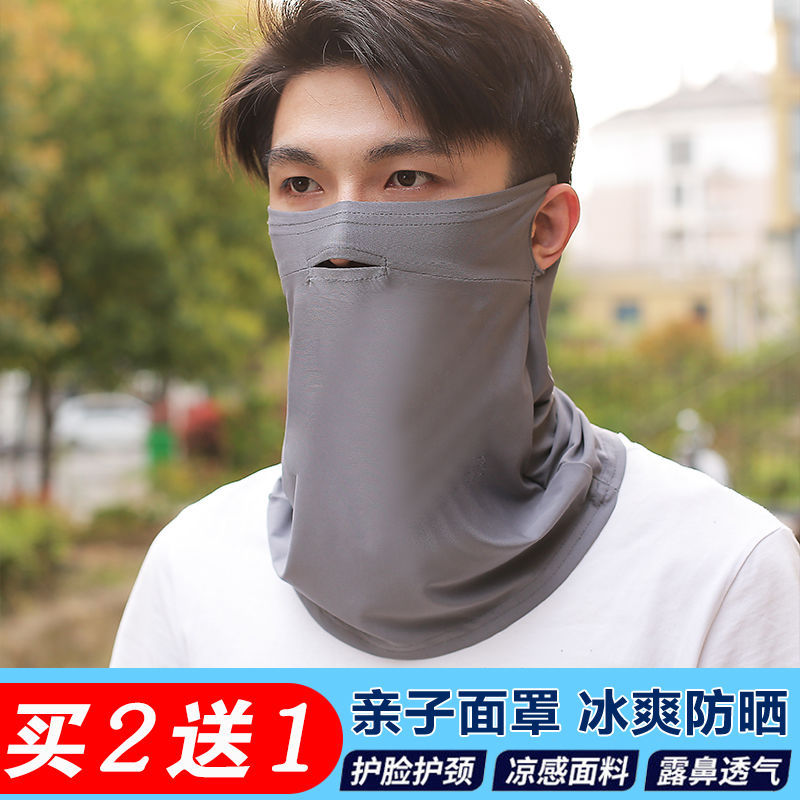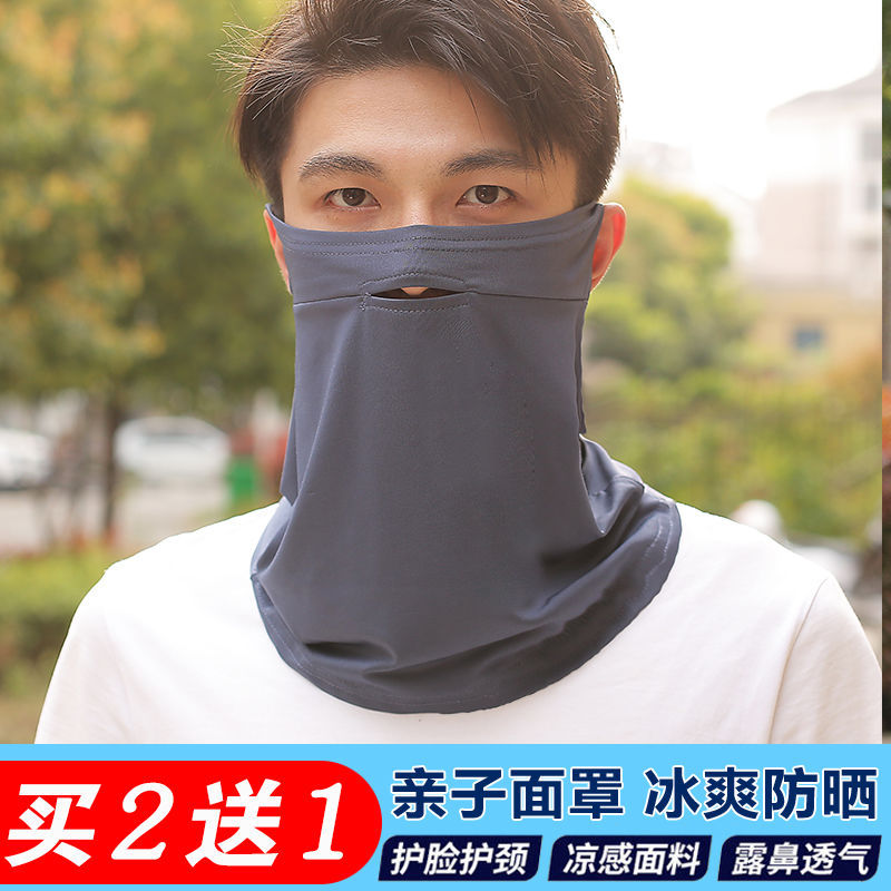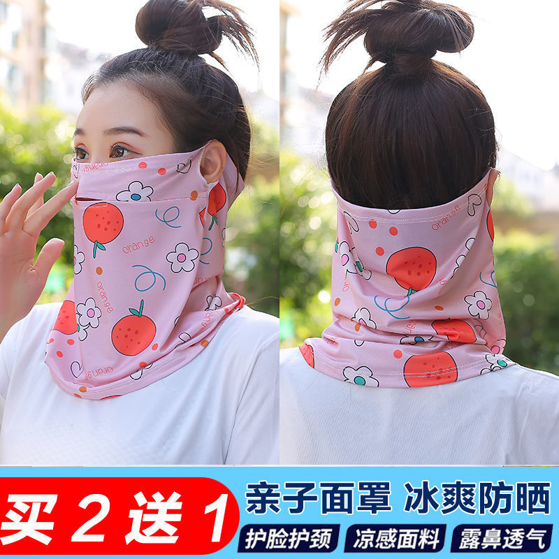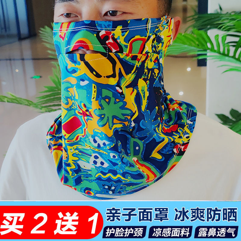防晒面纱男女夏季遮全脸护颈户外骑车面罩挂耳小丝巾薄冰丝围脖子