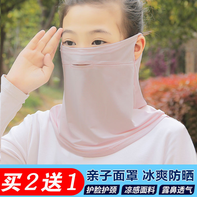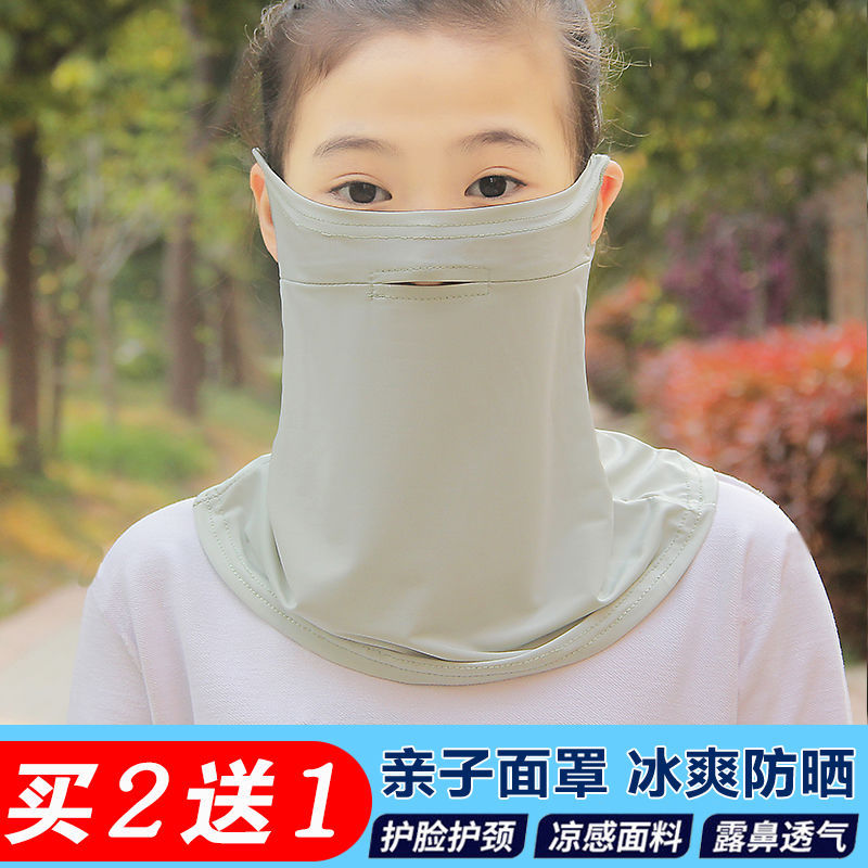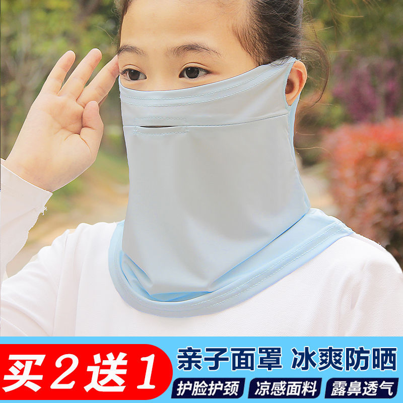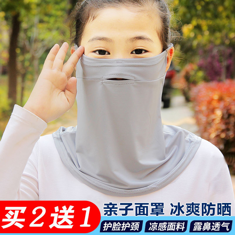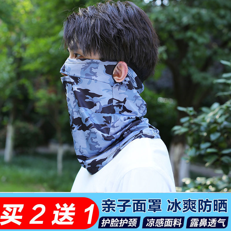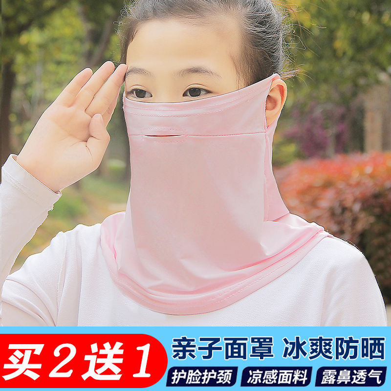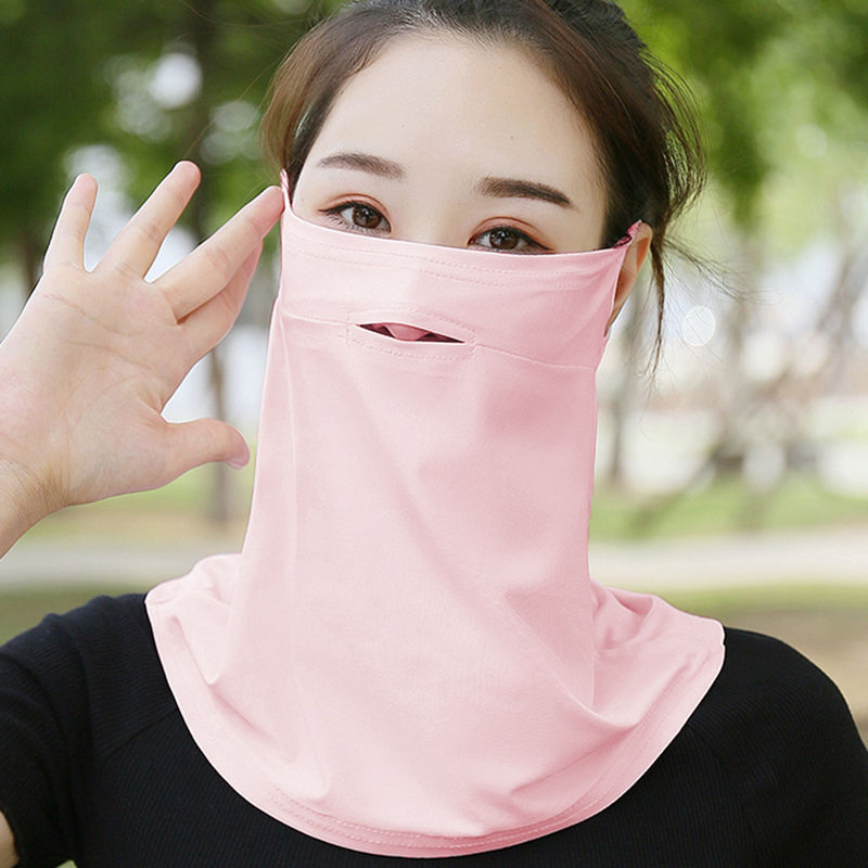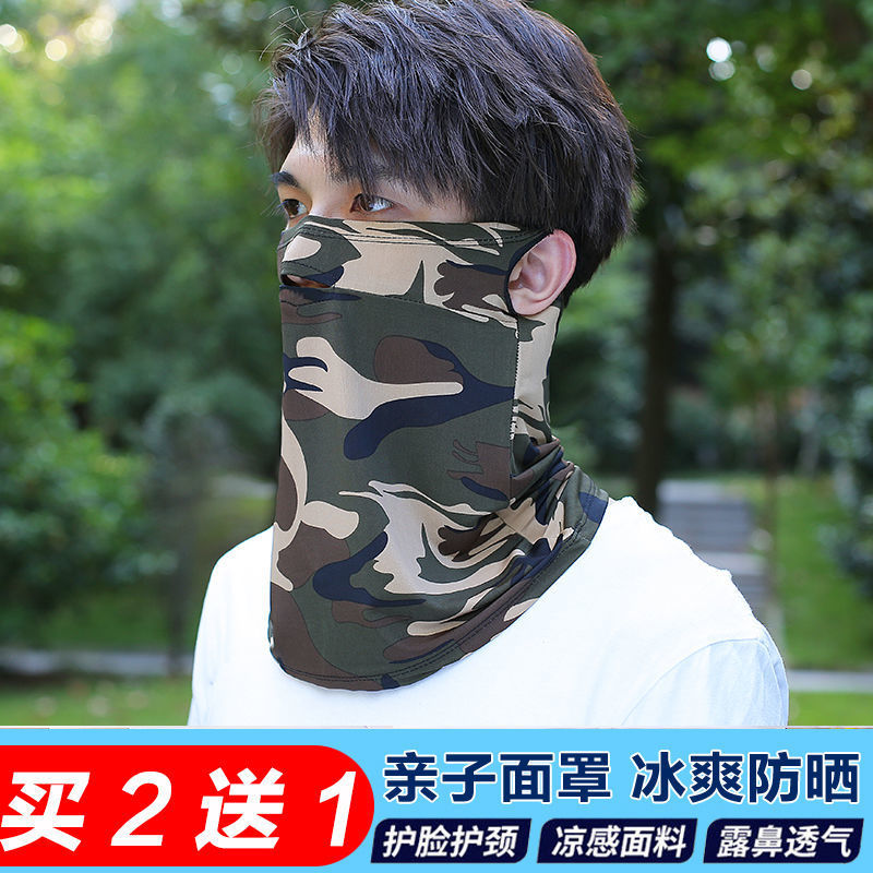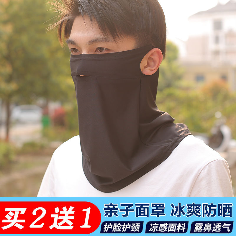 防晒面纱男女夏季遮全脸护颈户外骑车面罩挂耳小丝巾薄冰丝围脖子