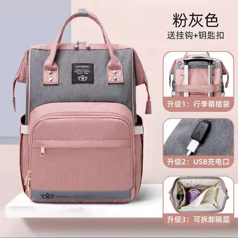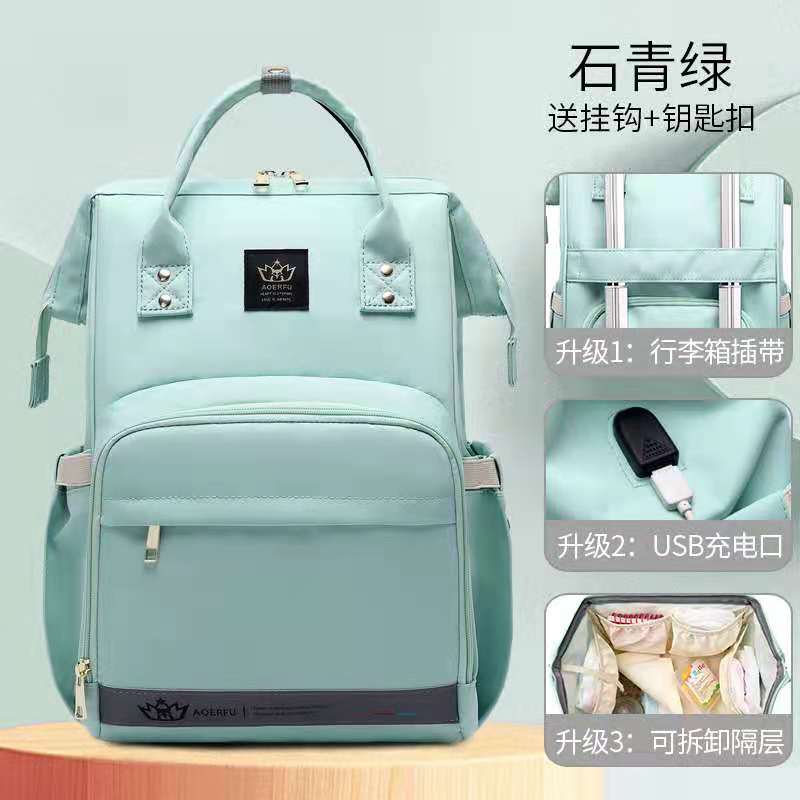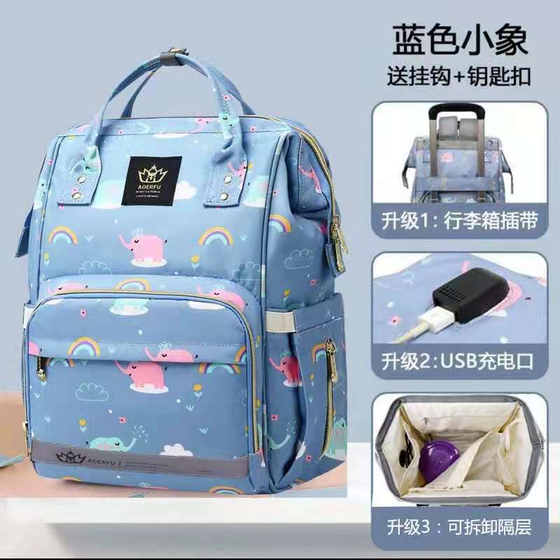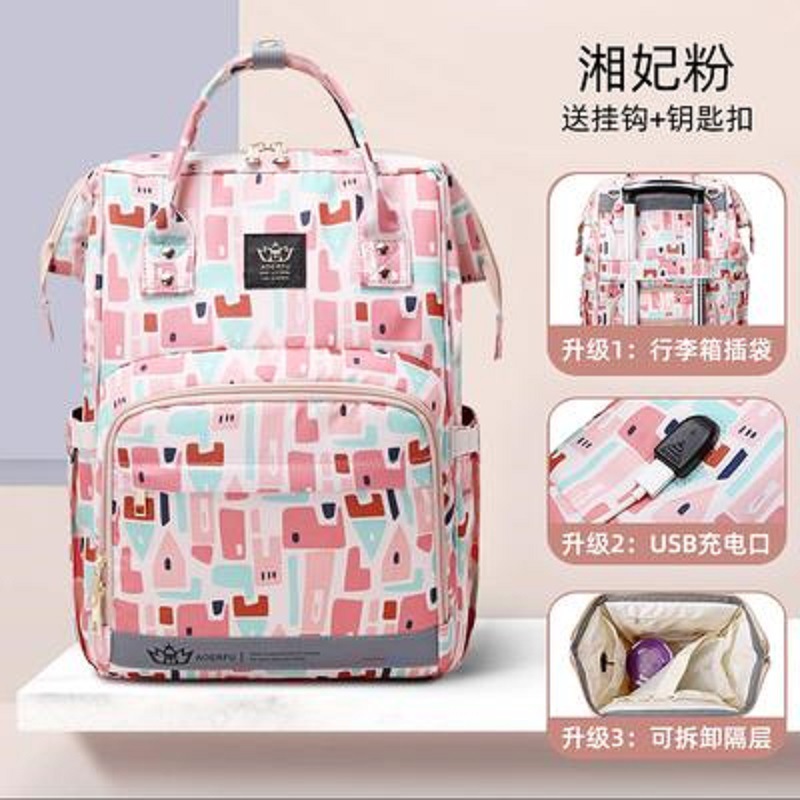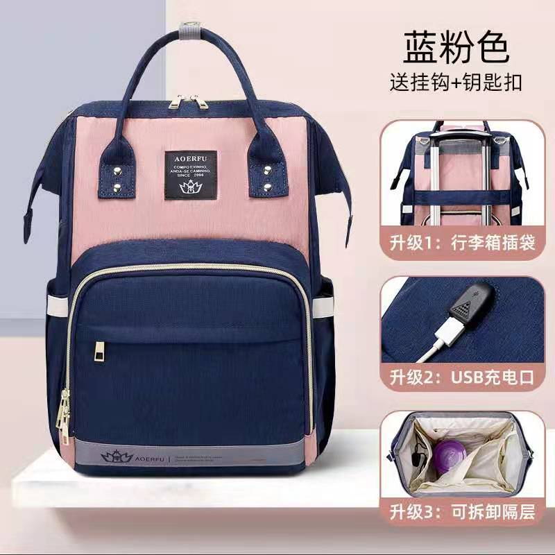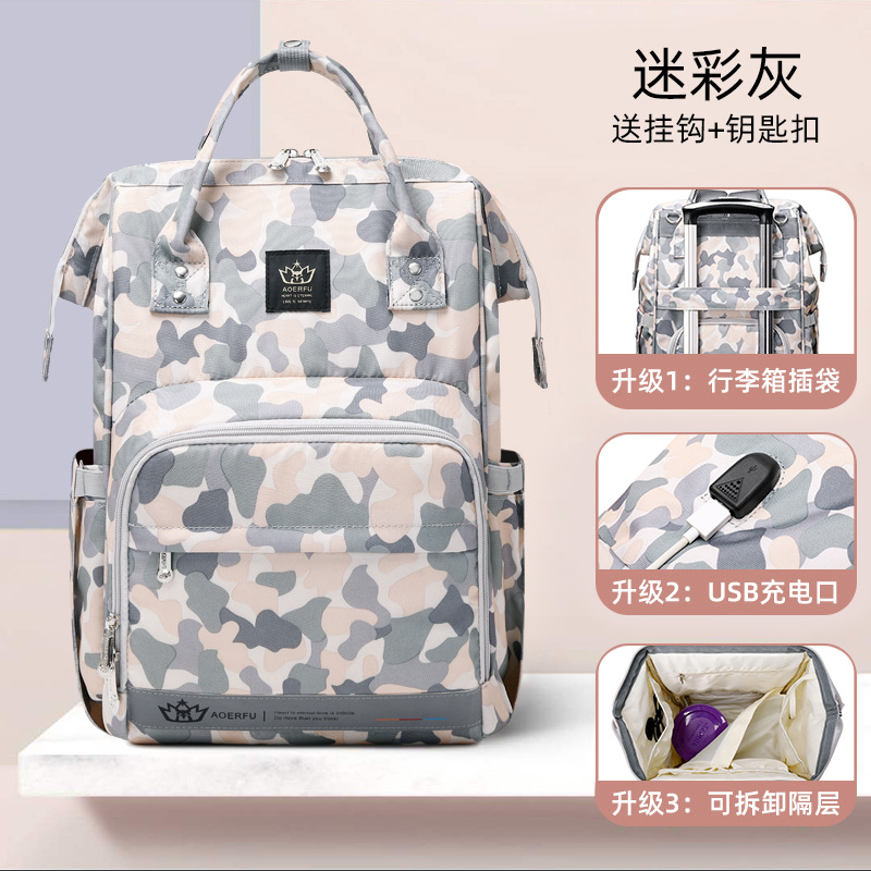 妈咪包 双肩手提包大容量多功能妈咪包 迷彩母婴包usb外贸妈妈包