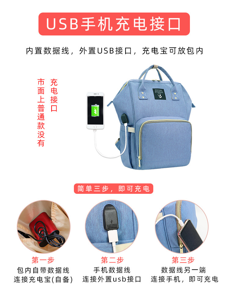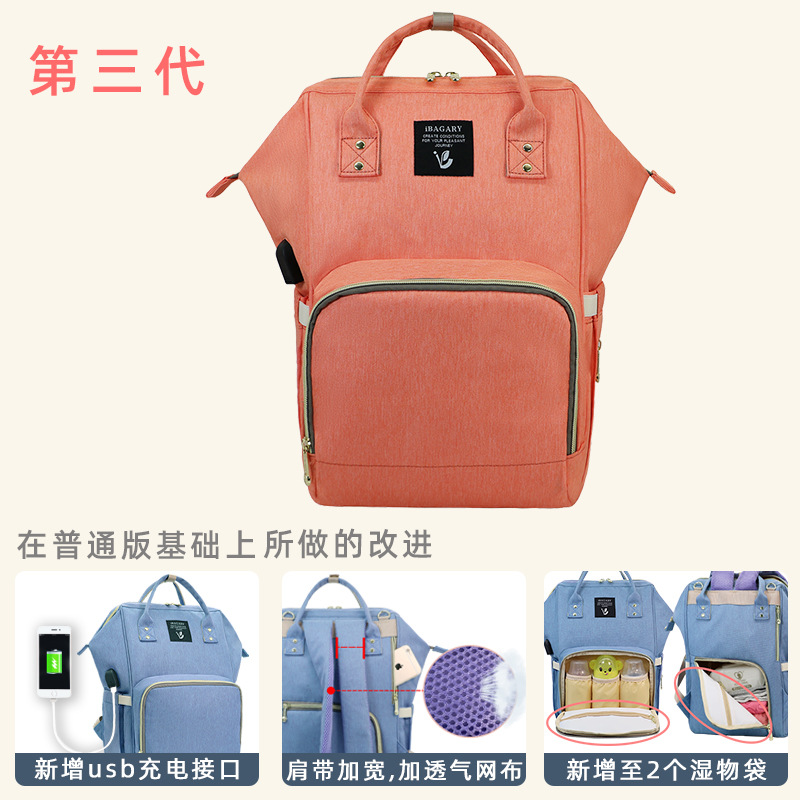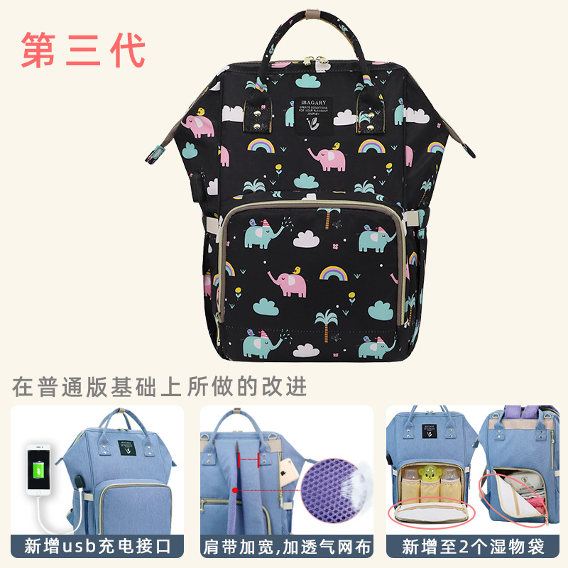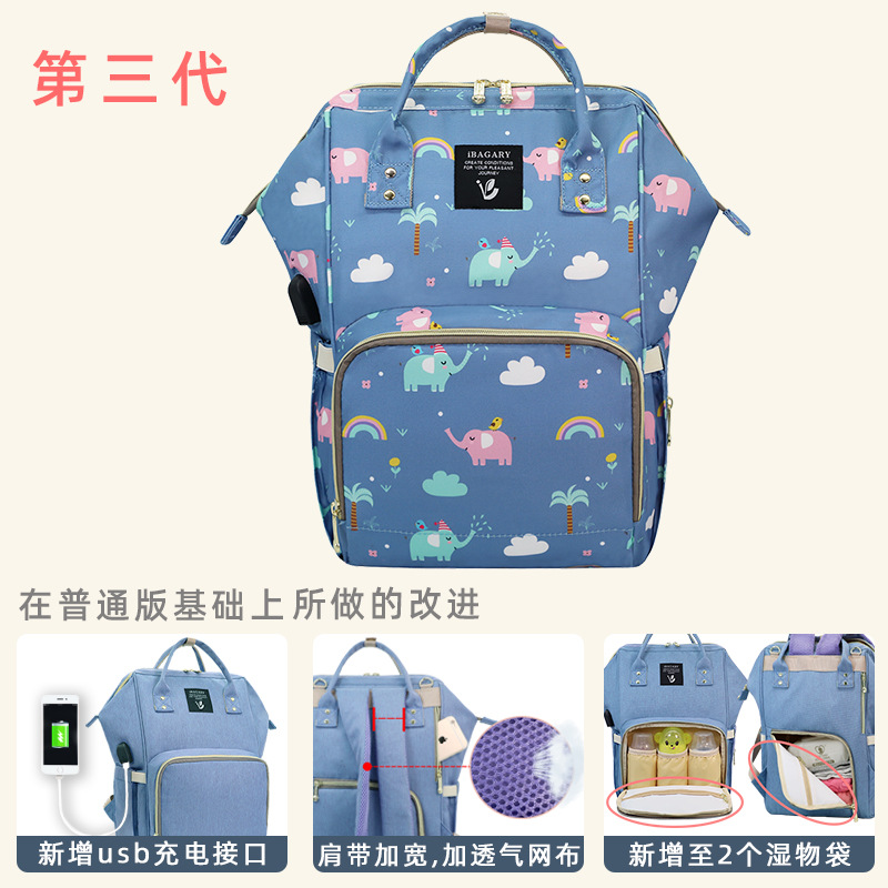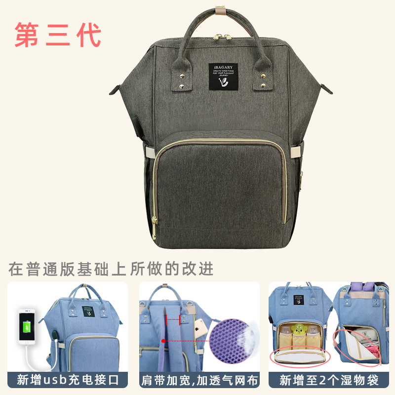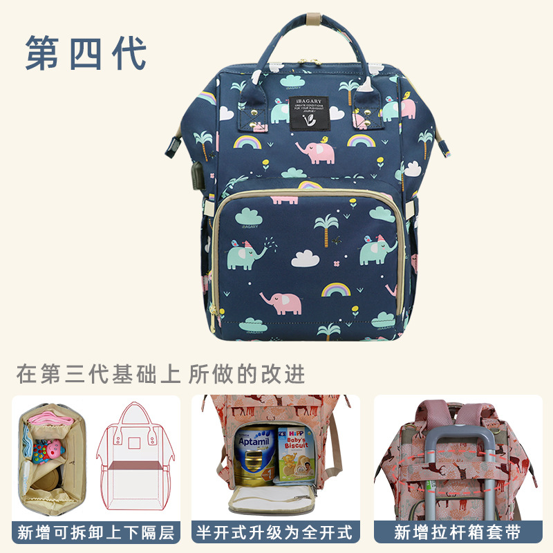 跨境usb宝妈时尚妈咪包 双肩多功能大容量新款婴儿妈妈包母婴包