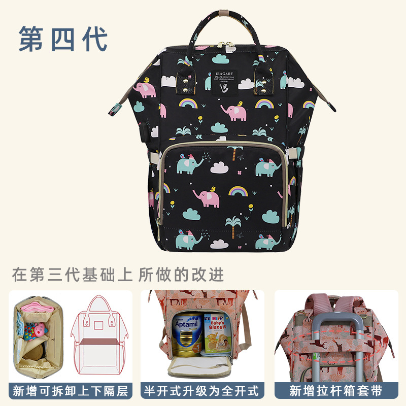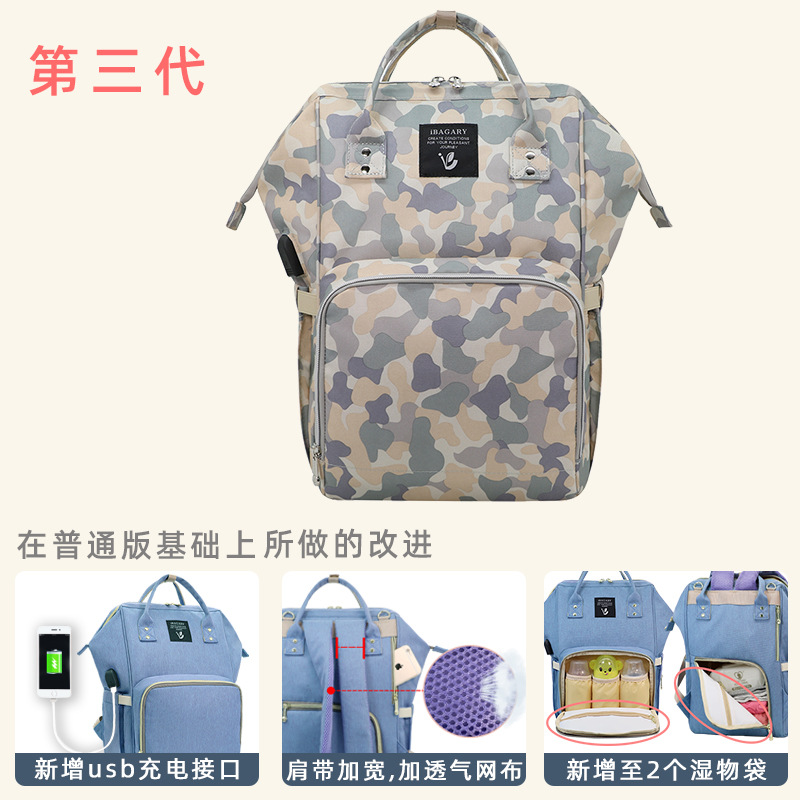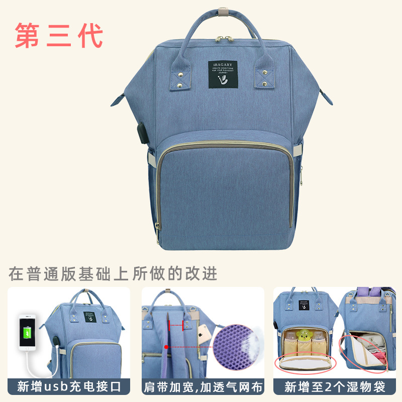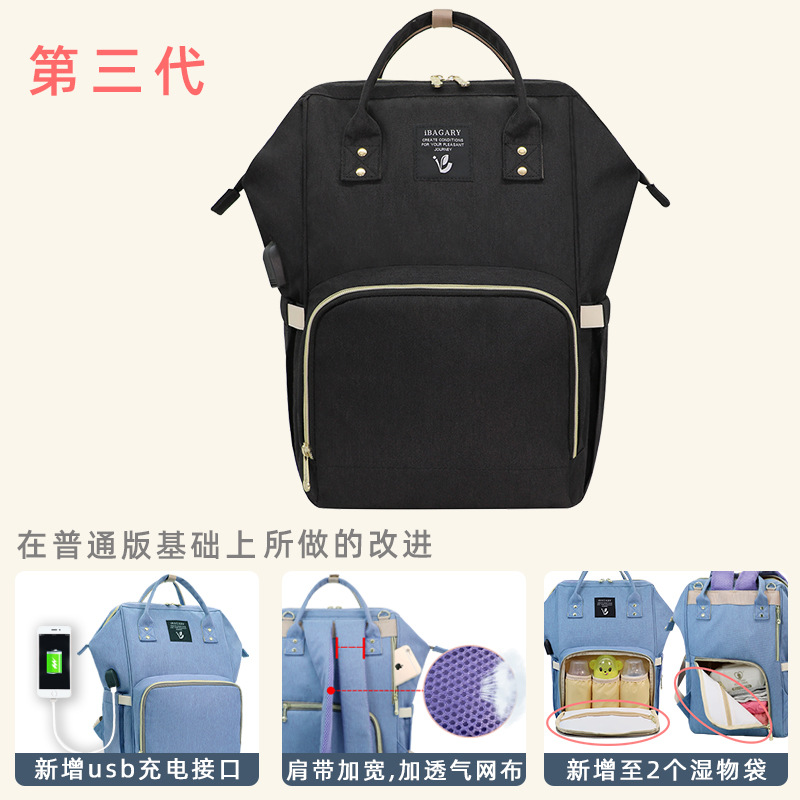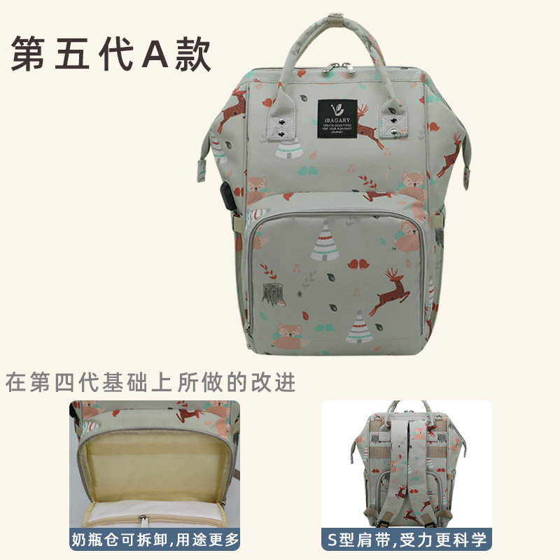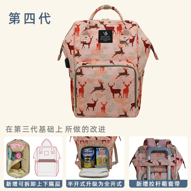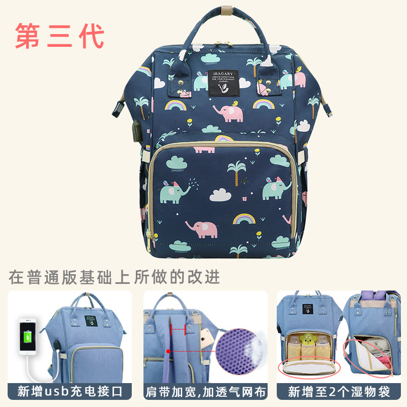 跨境usb宝妈时尚妈咪包 双肩多功能大容量新款婴儿妈妈包母婴包