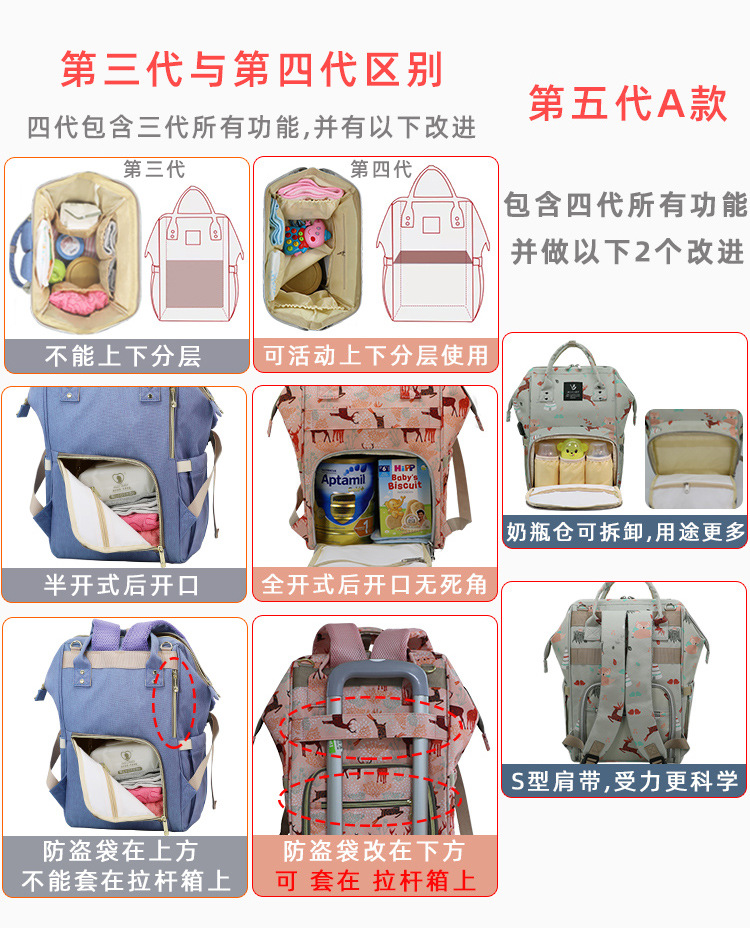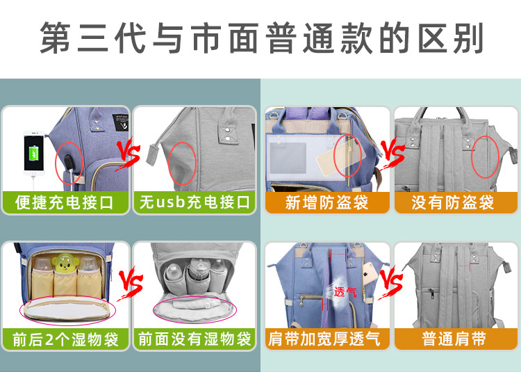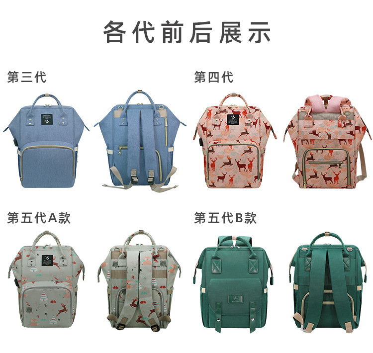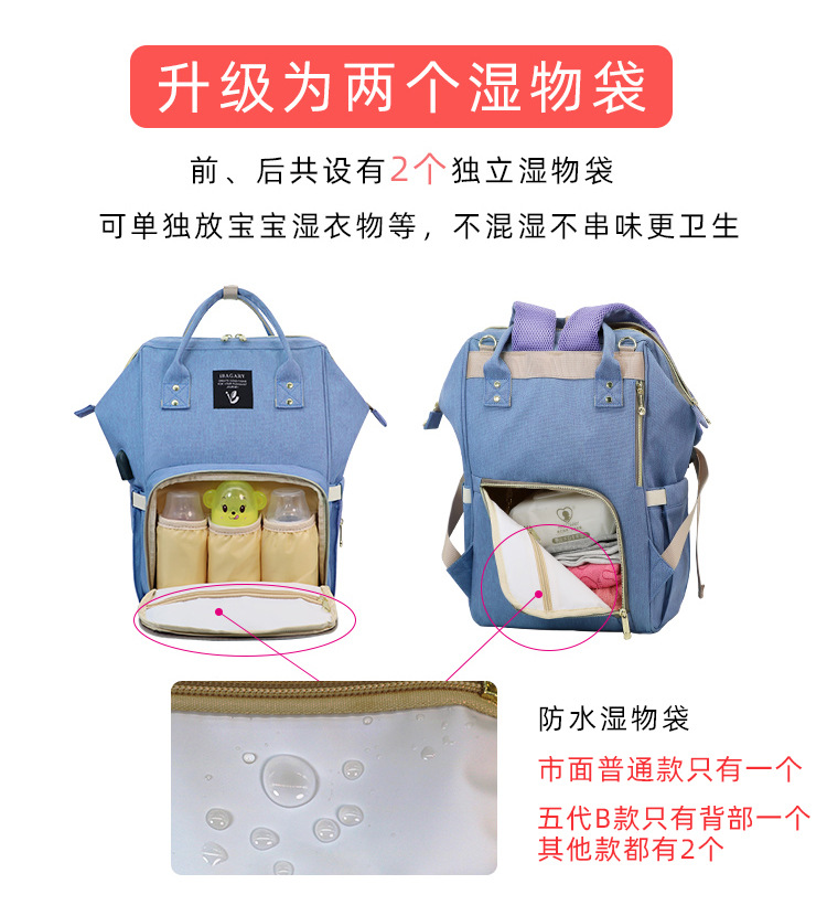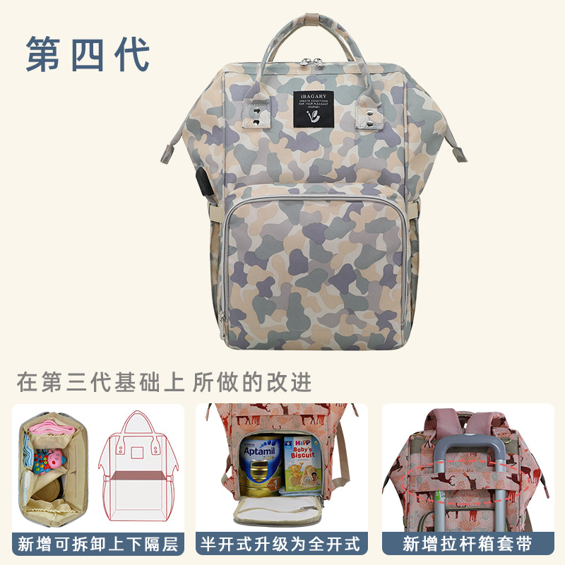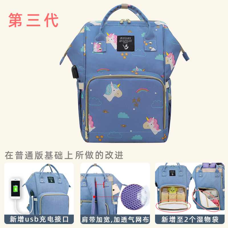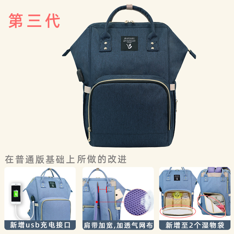 跨境usb宝妈时尚妈咪包 双肩多功能大容量新款婴儿妈妈包母婴包