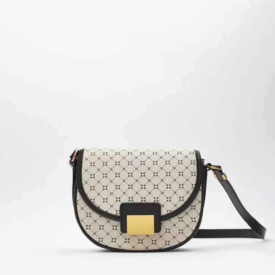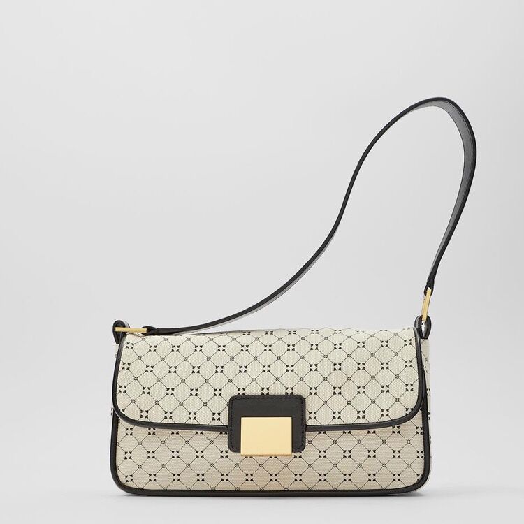 Z家腋下包新款女包拼色法棍包几何印花单肩包帆布格子小方包锁扣