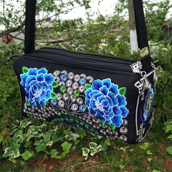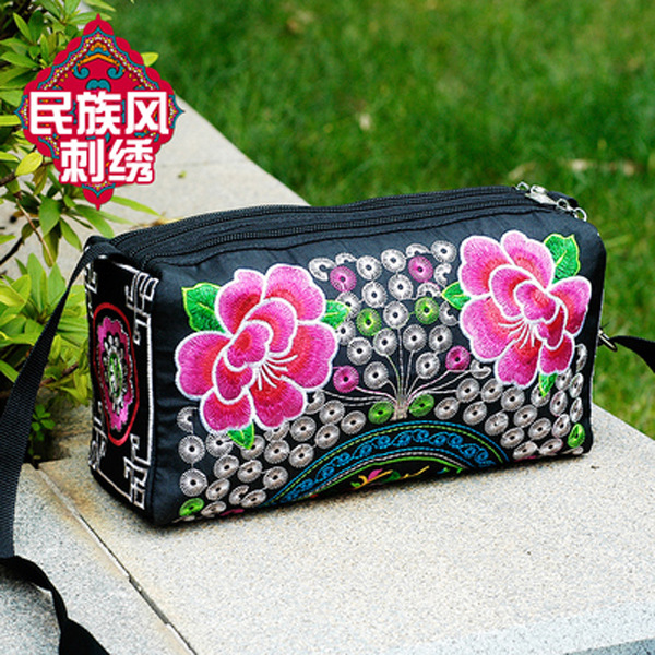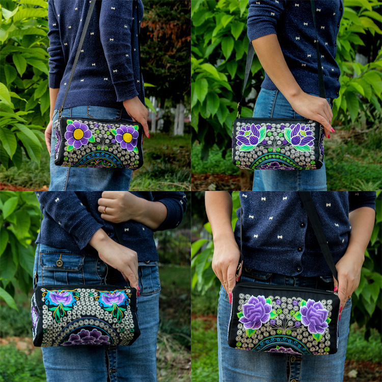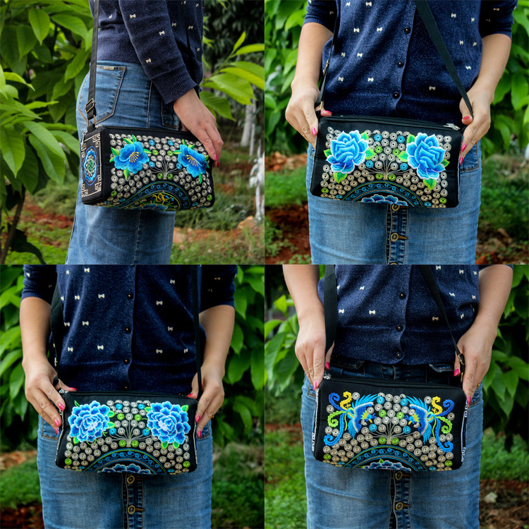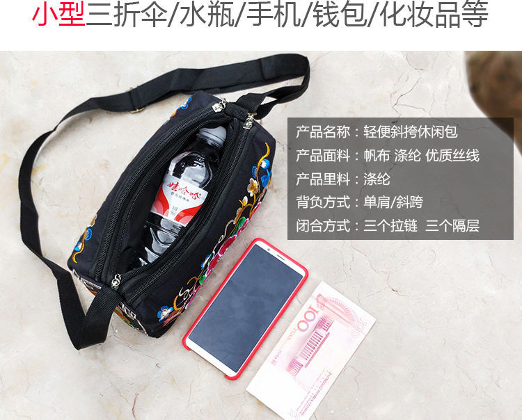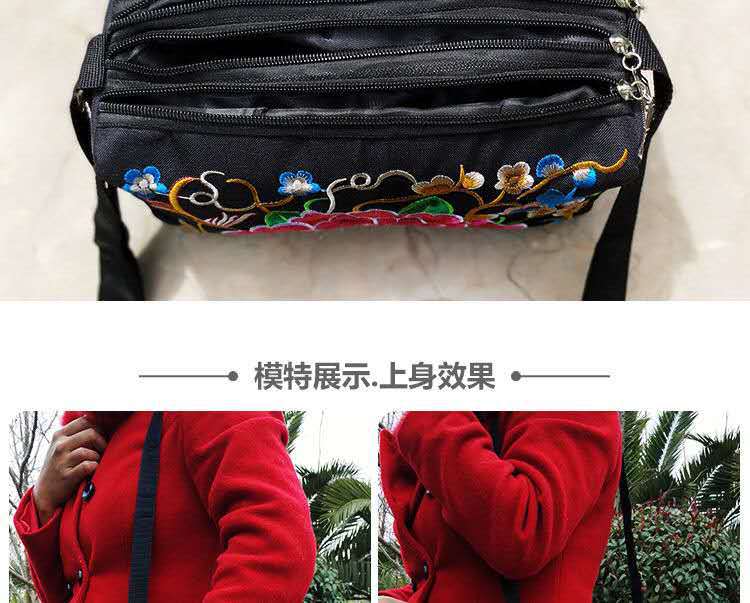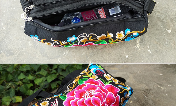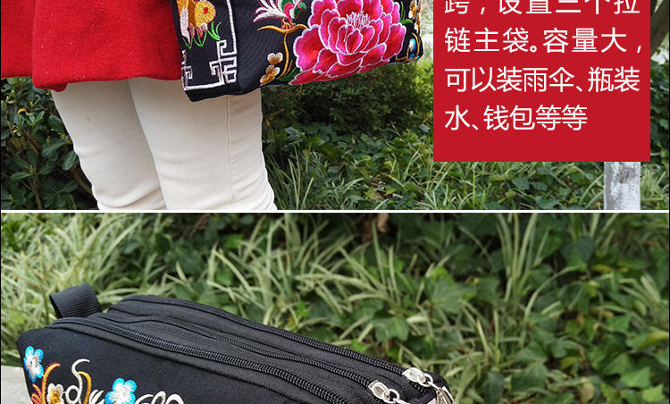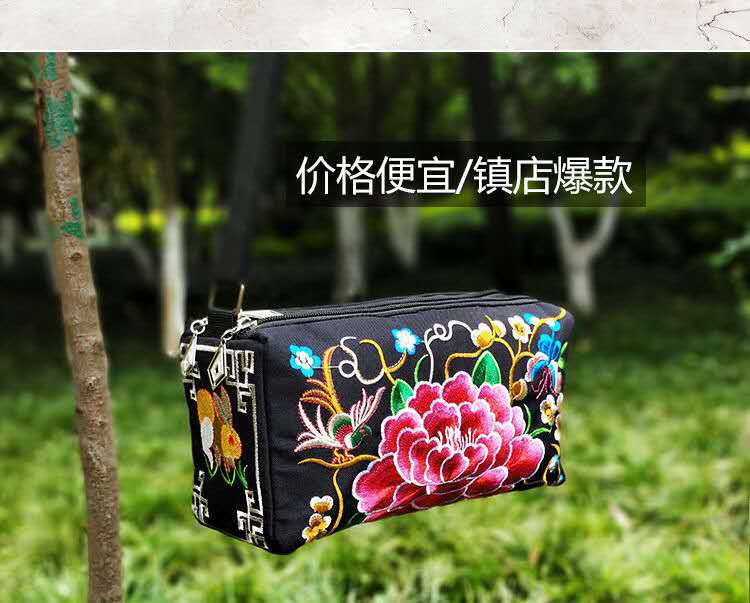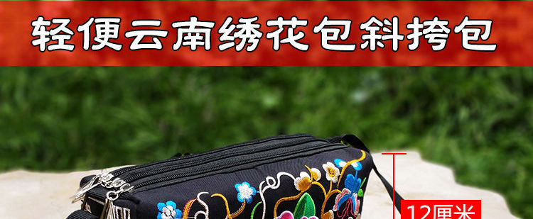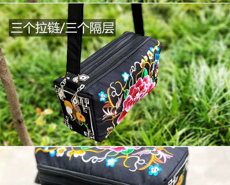 云南民族风绣花斜挎包三拉链双面刺绣包女复古单肩斜挎包