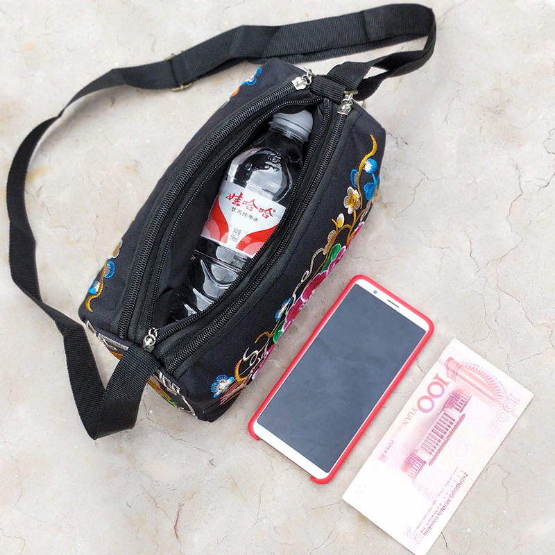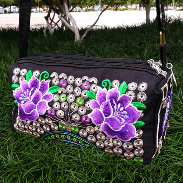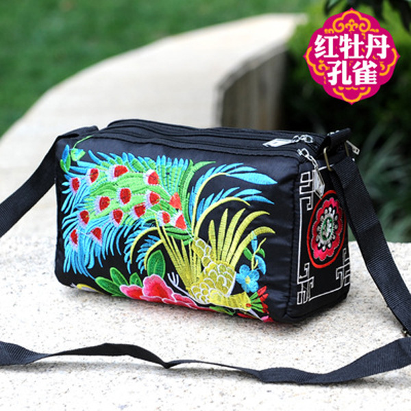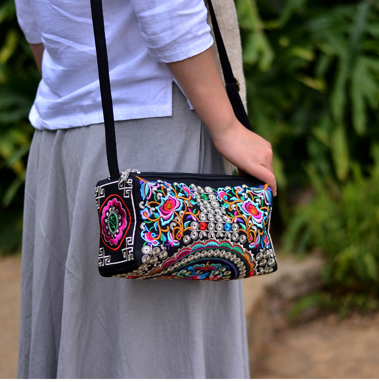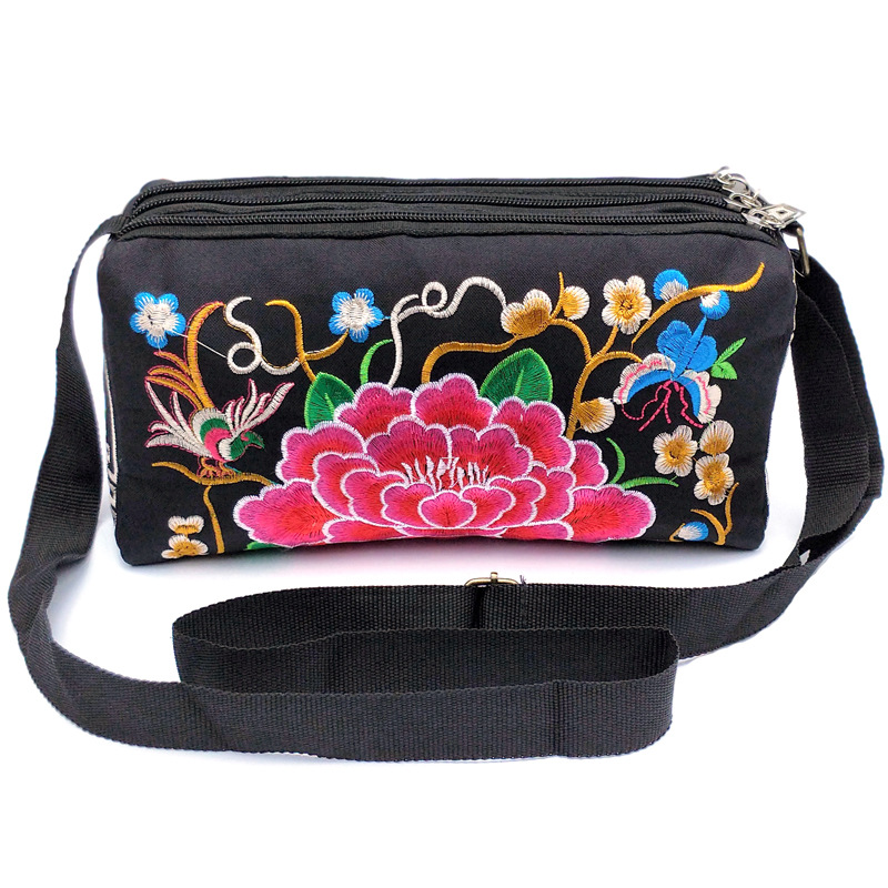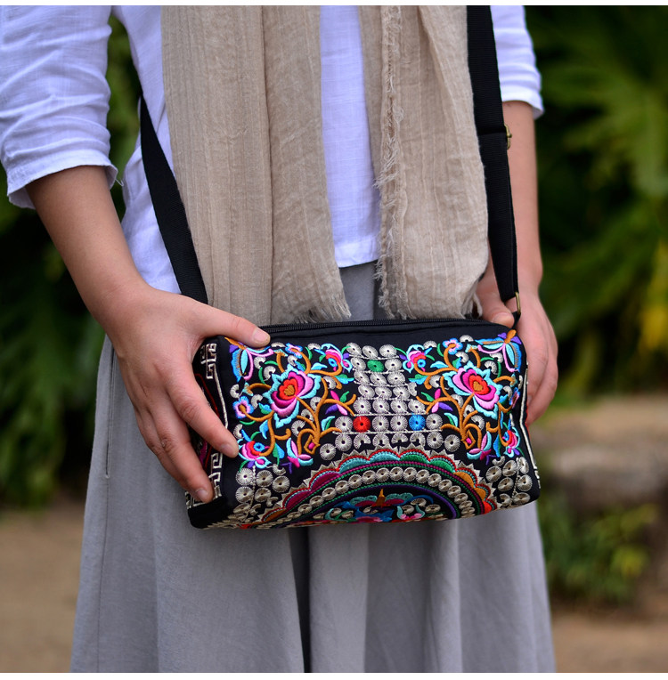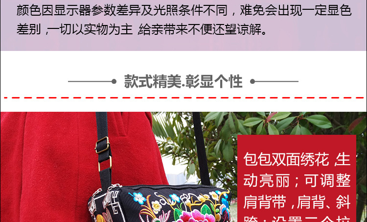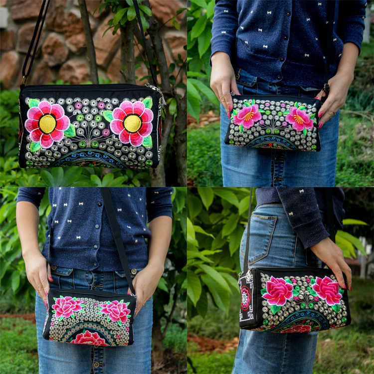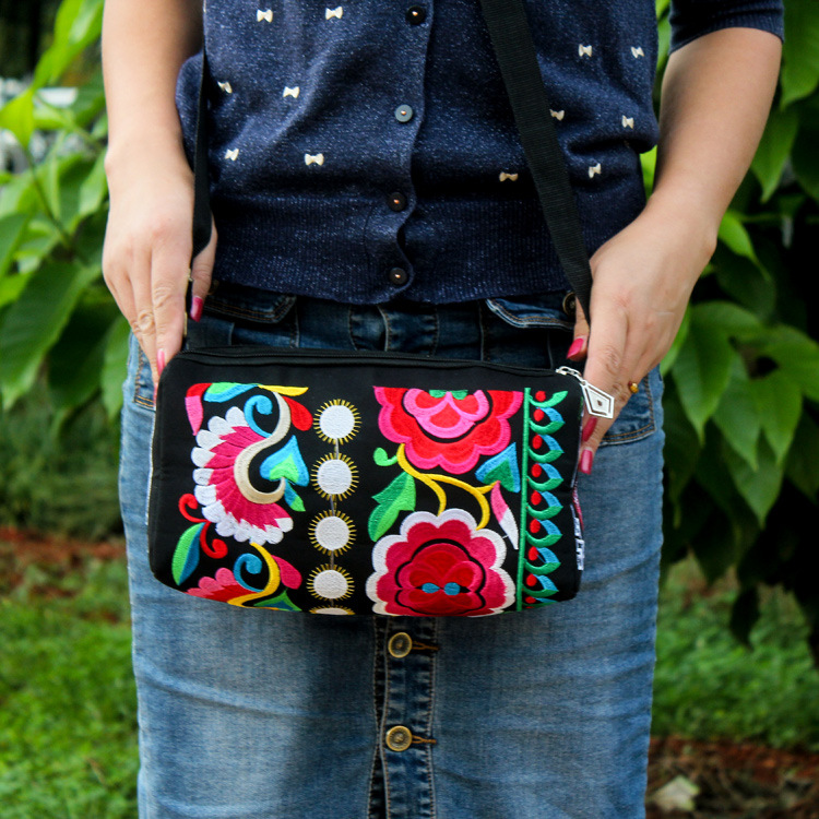 云南民族风绣花斜挎包三拉链双面刺绣包女复古单肩斜挎包