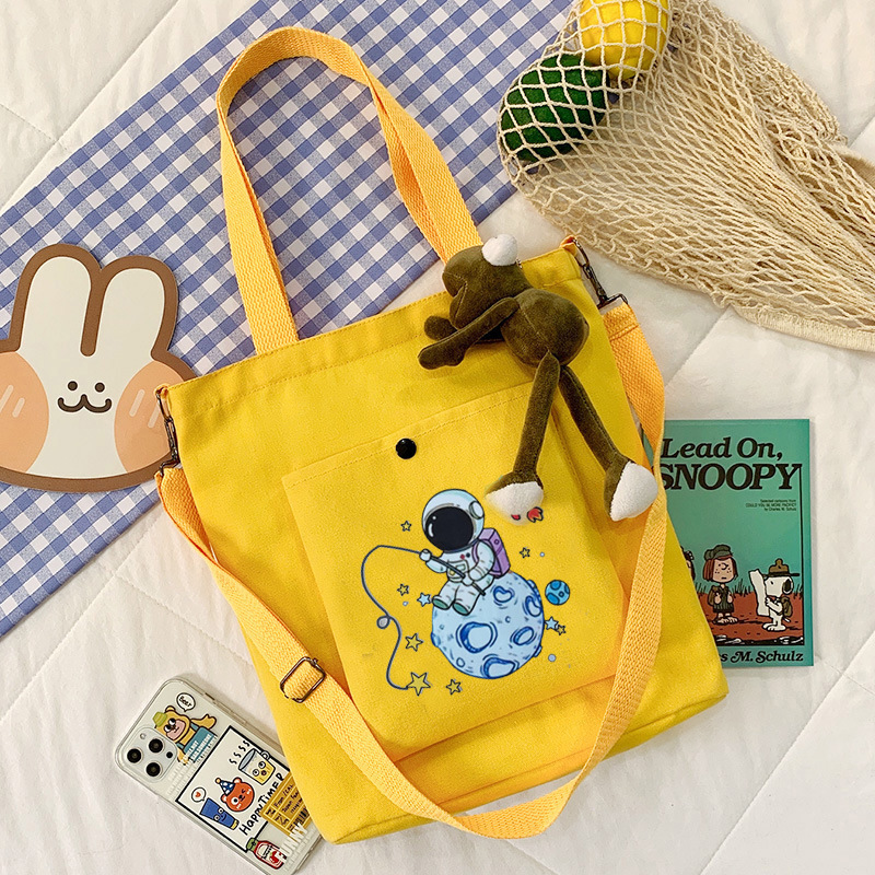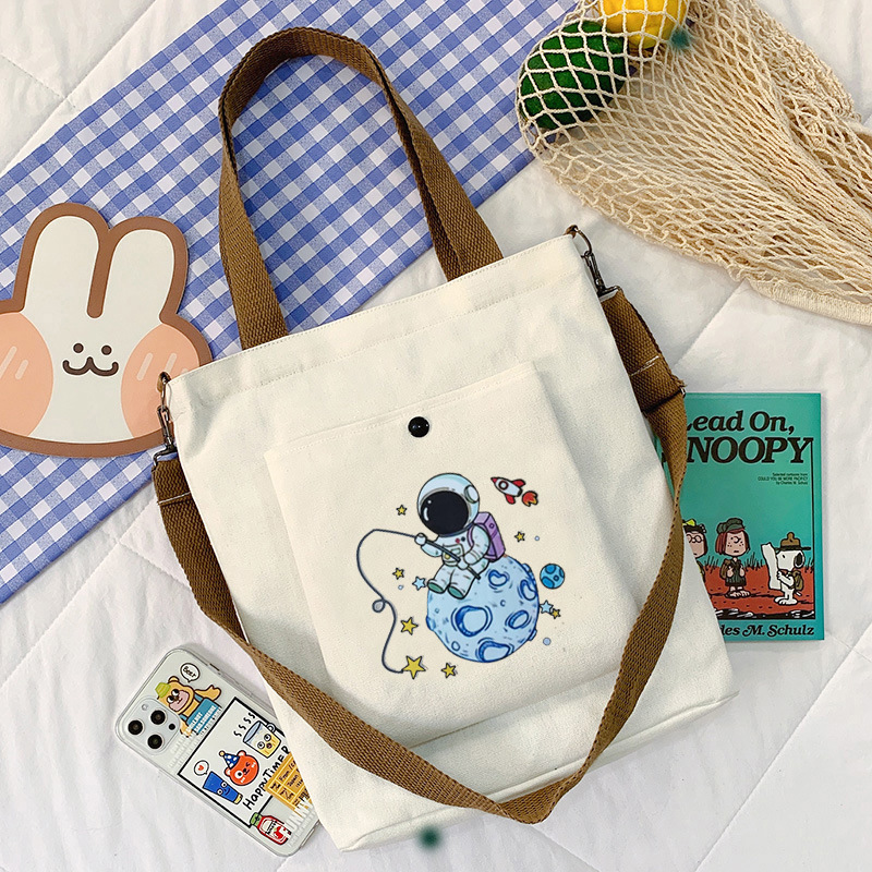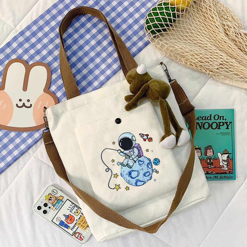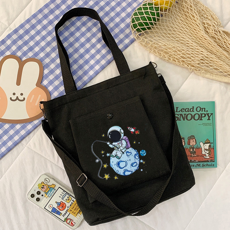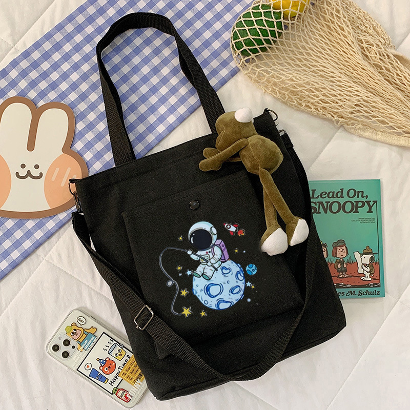 印花帆布包女包厂家批发太空人大容量单肩帆布包斜挎托特包可代发