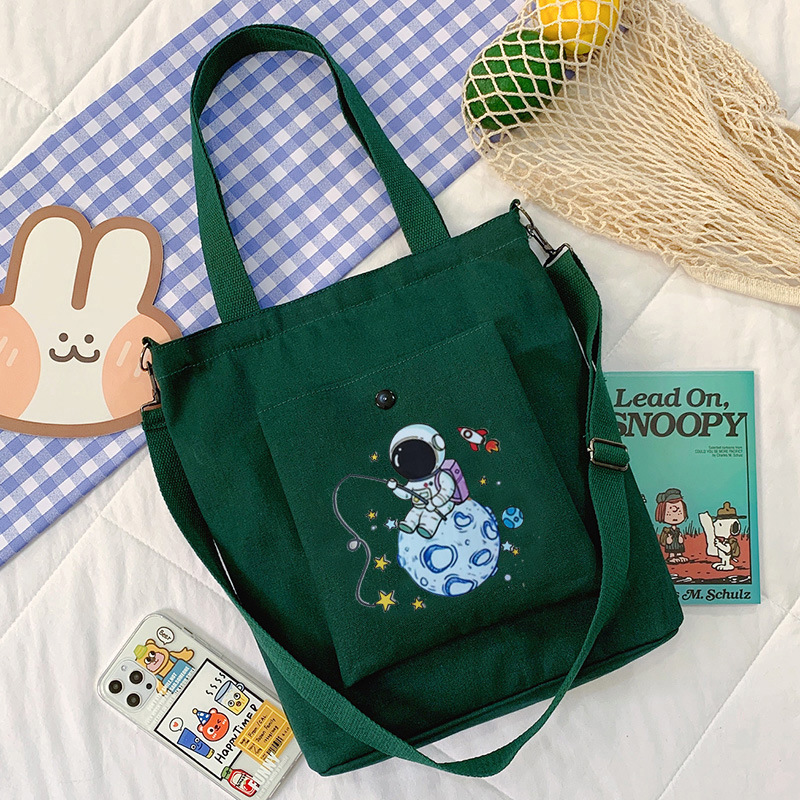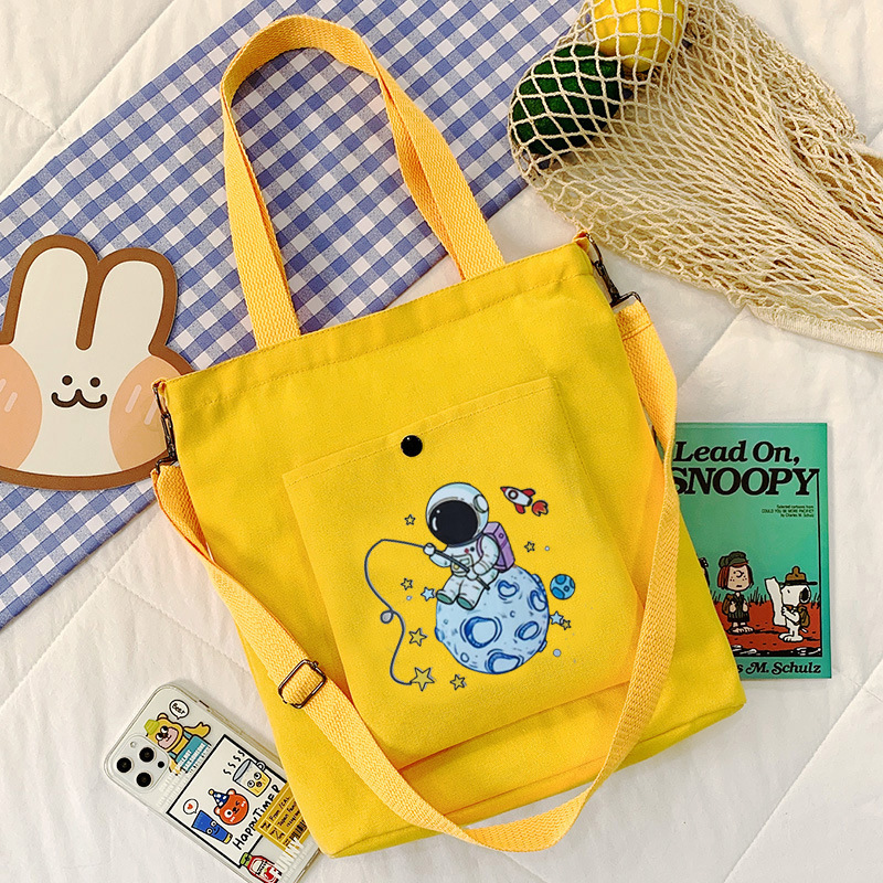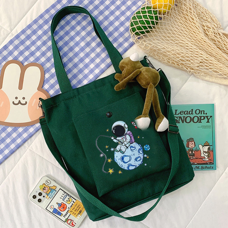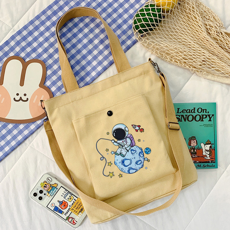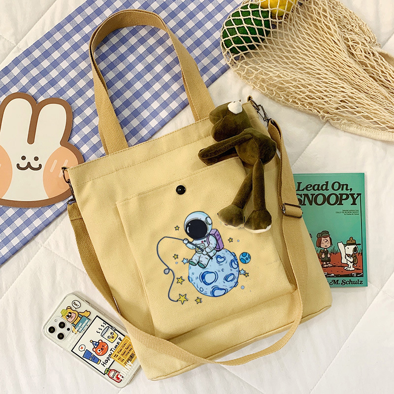 印花帆布包女包厂家批发太空人大容量单肩帆布包斜挎托特包可代发