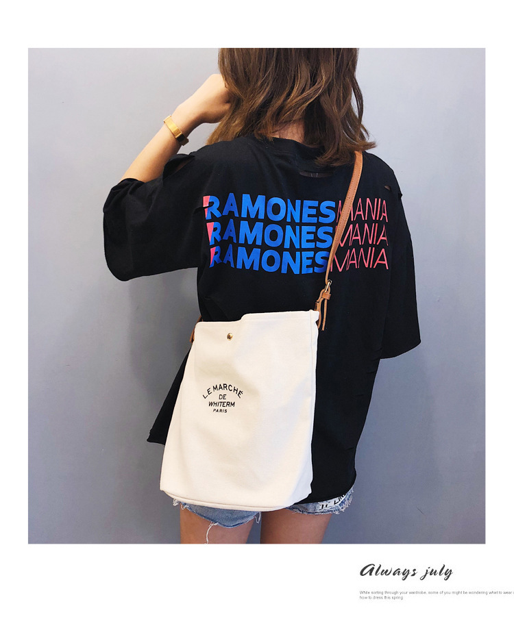 斜挎女包ins单肩水桶包包女新款2021时尚韩版帆布包女定制批发