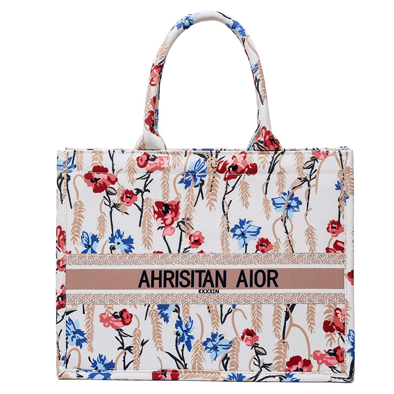 大容量帆布包包女新款潮流时尚手提单肩包复古帆布印花托特包女包