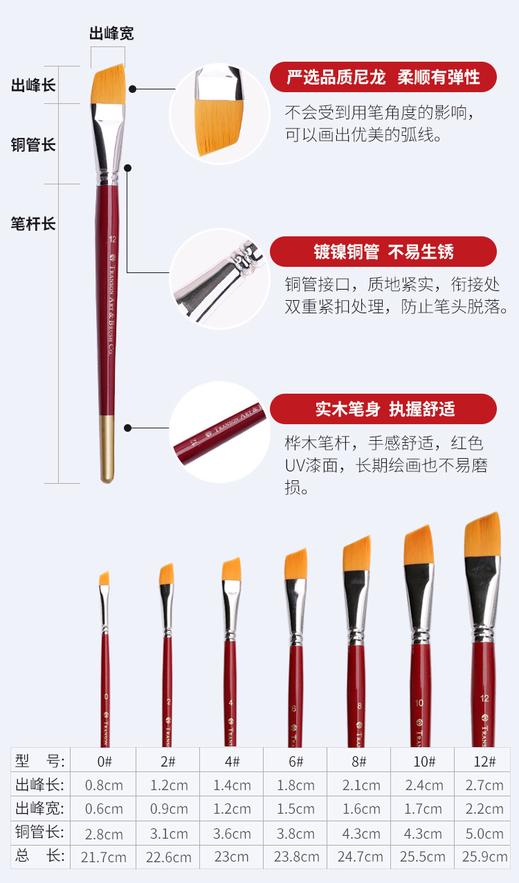 | no. 12: short rod nylon oblique peak brush(12号:短杆尼龙斜峰画笔) | USD $0.92 | 215362 pcs available |