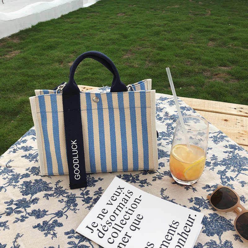 厂家手提斜跨小包 ins包条纹 单肩帆布包 女包