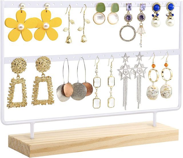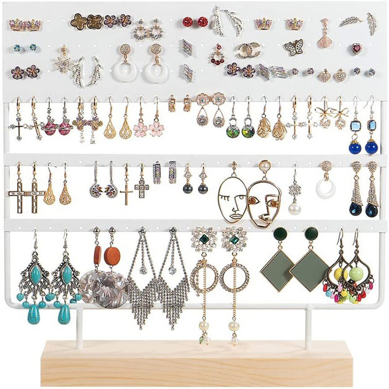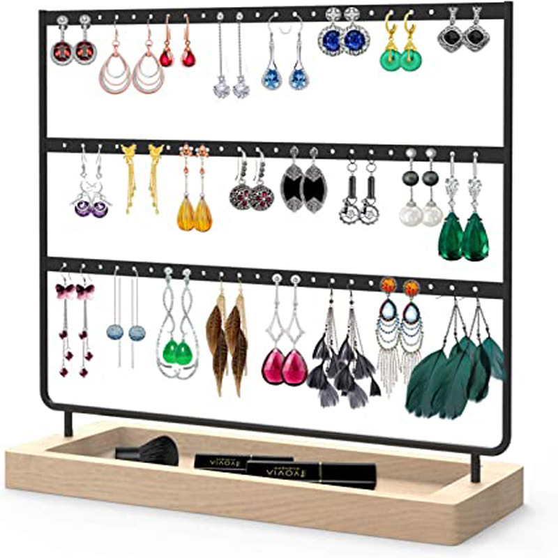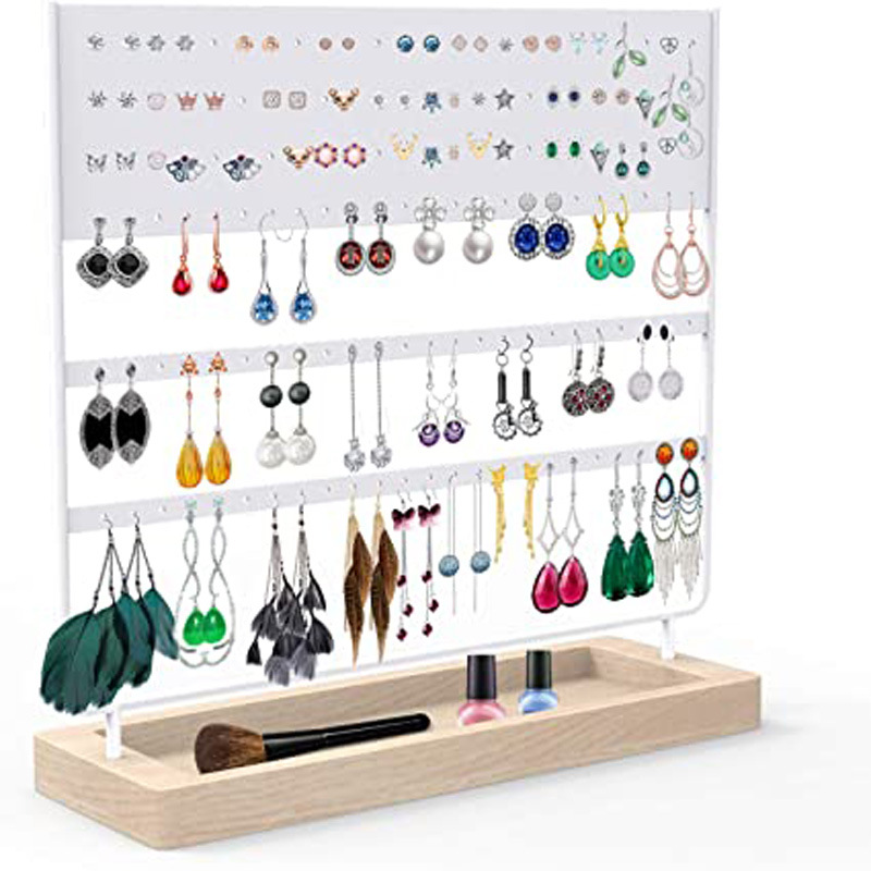 亚马逊热销可拆卸木底座耳钉展示架 144孔耳环收纳架桌面挂耳环架