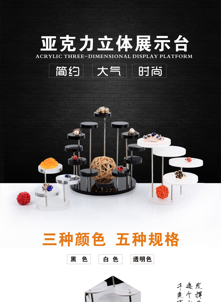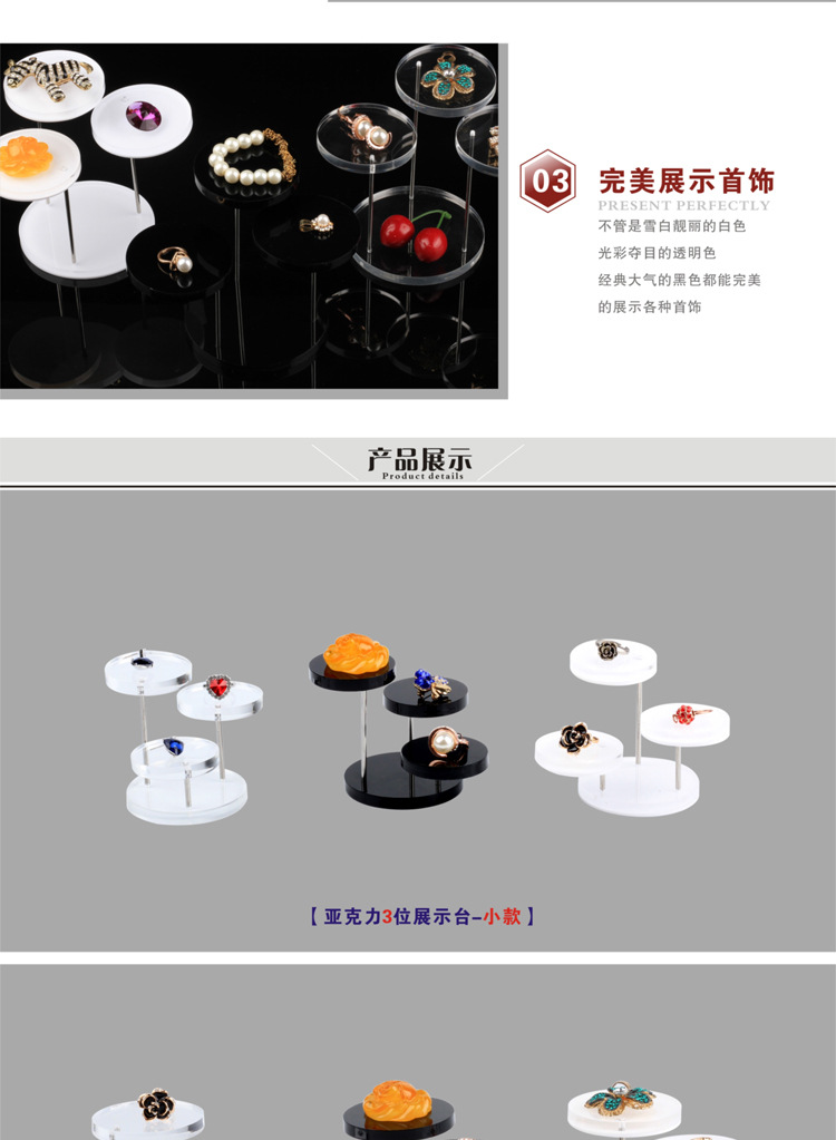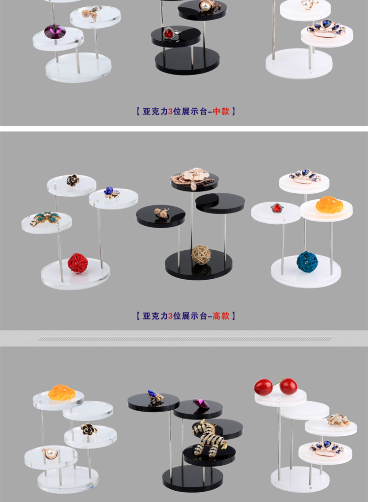 热销亚克力戒指饰品展示架 三层圆形珠宝旋转戒指展示架 展示台