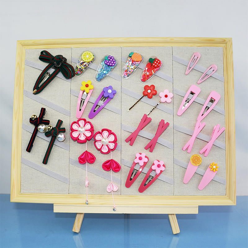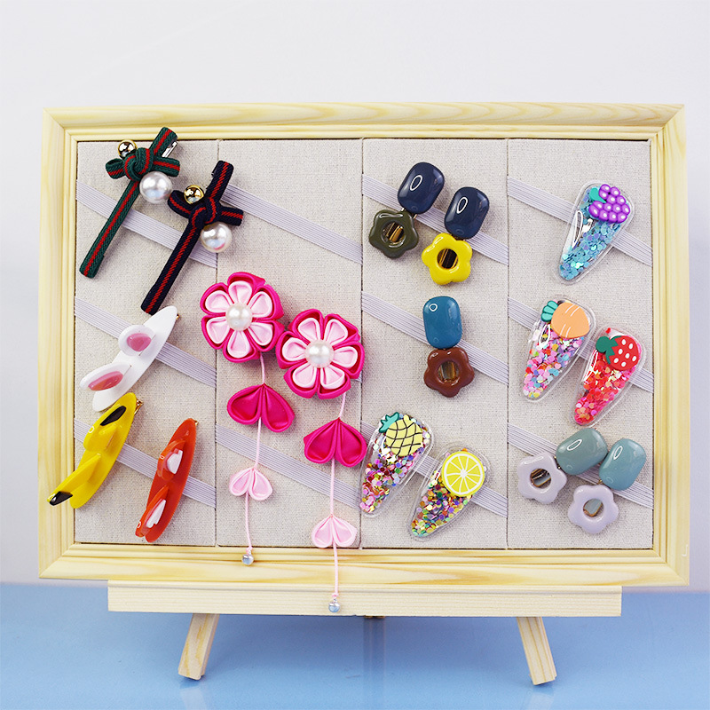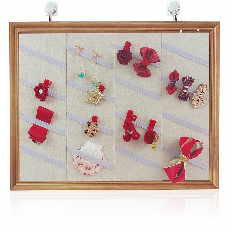 实木相框挂墙发夹展示板耳夹发夹头饰陈列饰品架发圈发带收纳摆件