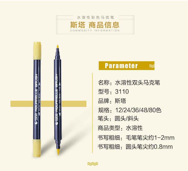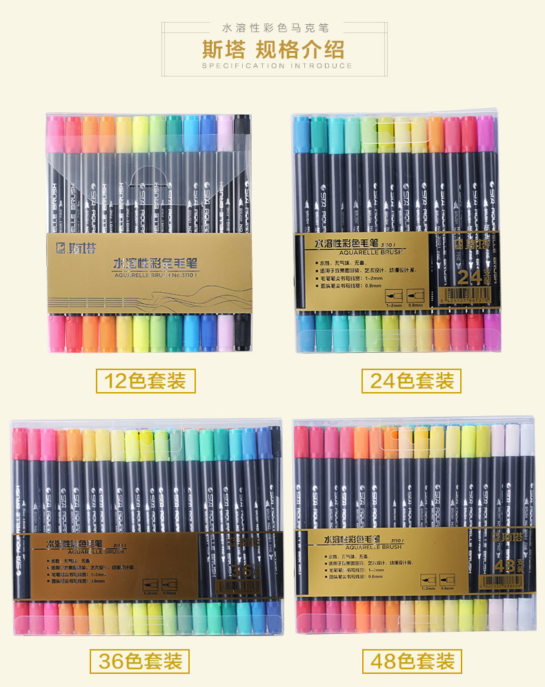 STA斯塔3110水彩马克笔套装 漫画双头软头绘画笔水溶笔儿童绘画笔