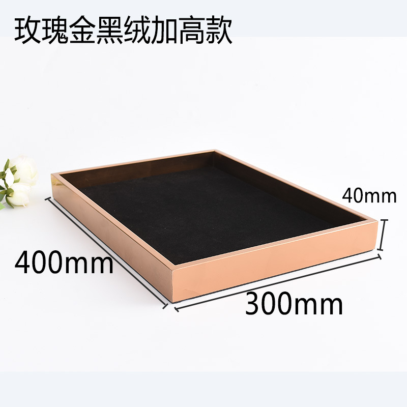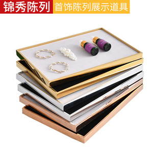 高档不锈钢边框珠宝首饰盘手表项链绒布托盘首饰品展示架厂家直销