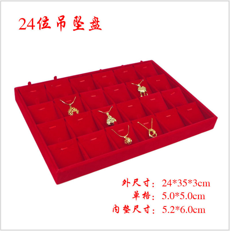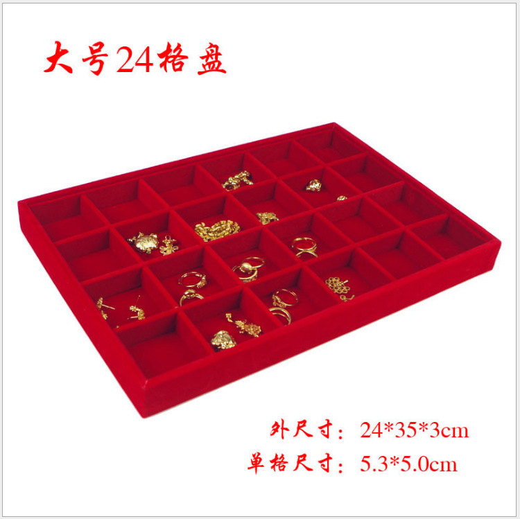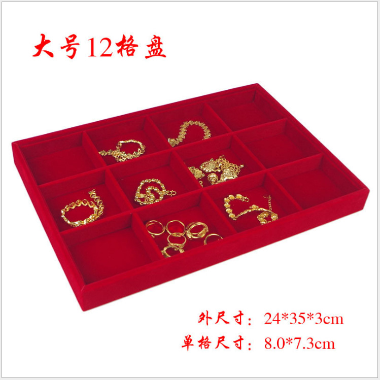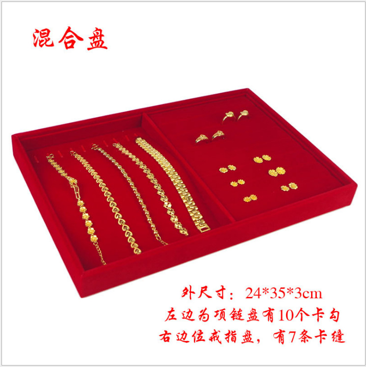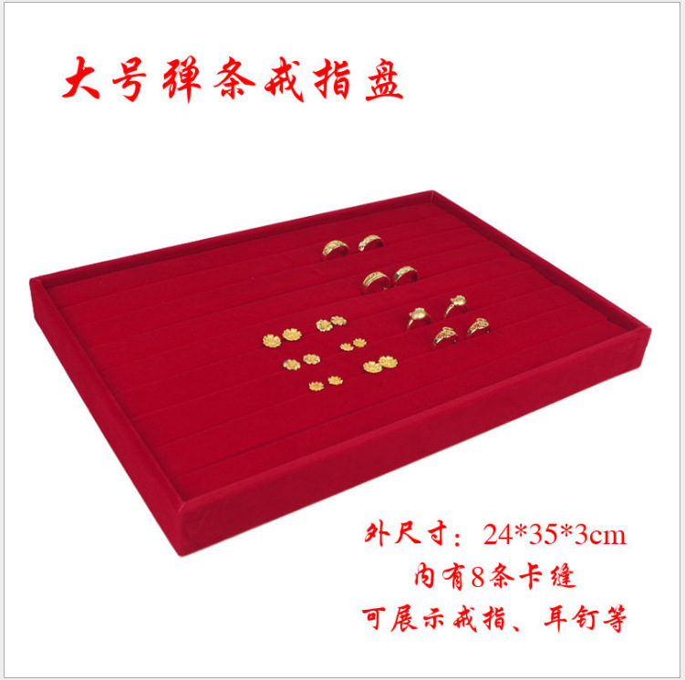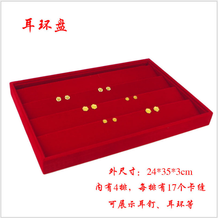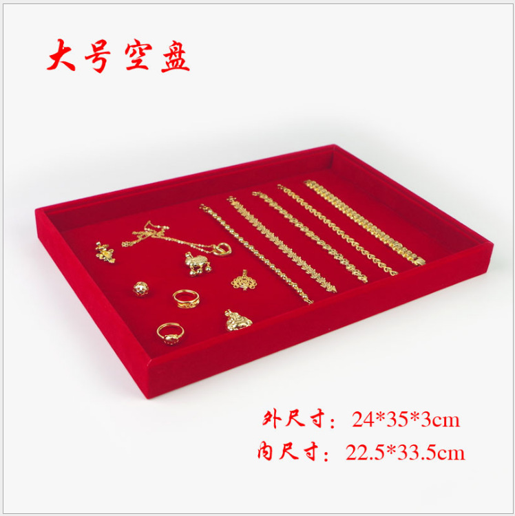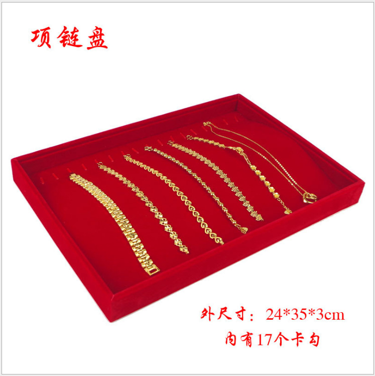 大红绒布首饰托盘收纳盒项链戒指耳环手镯吊坠黄金珠宝饰品展示架