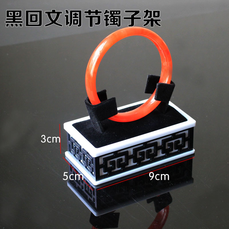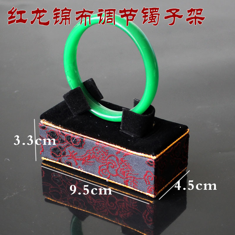 编织调节镯子架:底部咖啡面部分规格为5 * 9 * 2cm。上部切片为宽窄可调。但不适合放很宽或者很细的镯子。适用于普通大小的手镯展示。