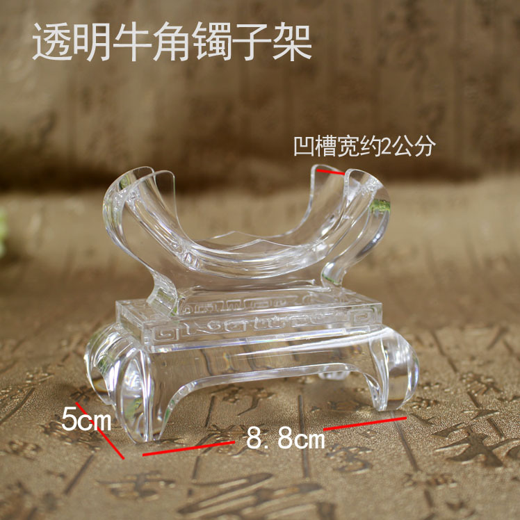 透明牛角镯子架:槽宽约1.9cm,架子外径约为9* 4.2 * 6cm