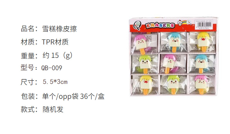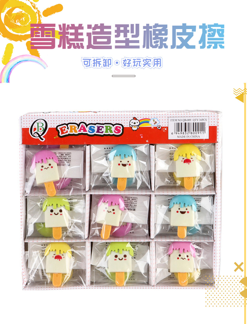 创意3D卡通萌物可拼装笑脸冰棒橡皮檫可爱雪糕造型橡皮幼儿园奖品
