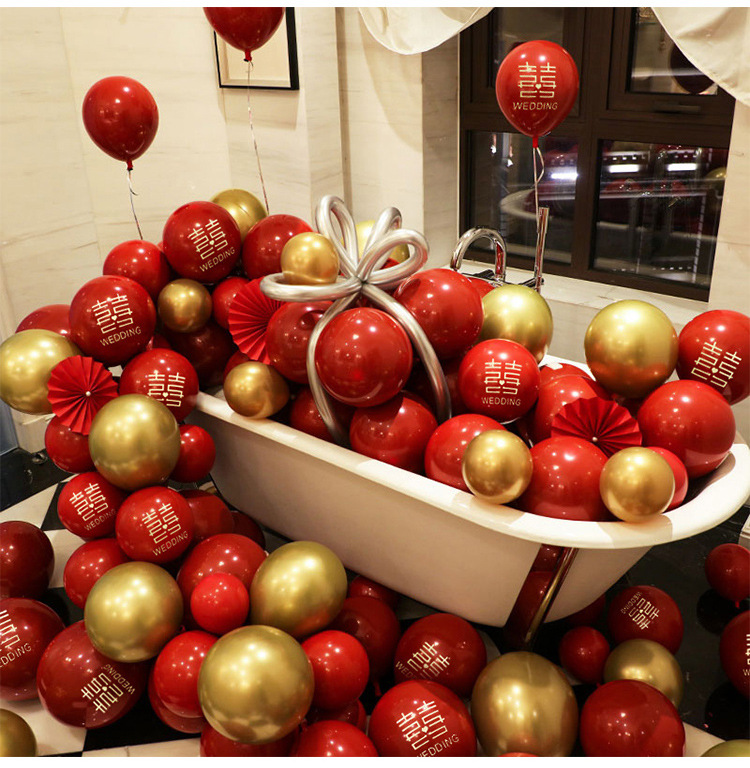 双层加厚石榴红网红气球生日派对广告气球婚礼结婚房装饰场景布置