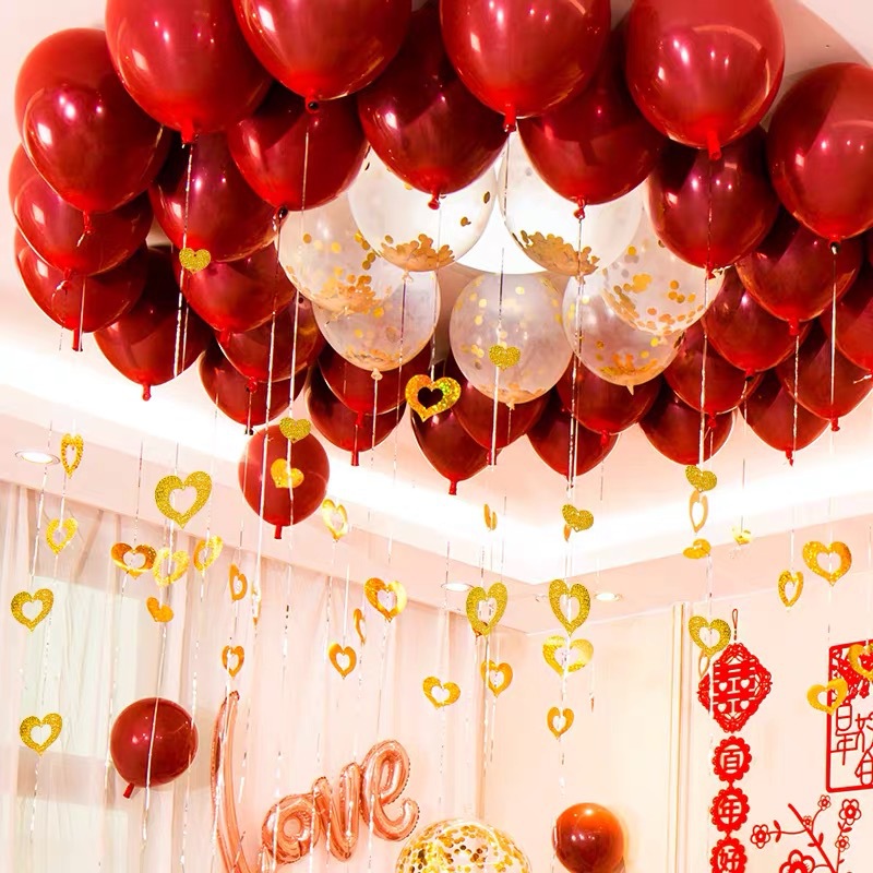 10寸2.2克石榴红婚庆婚房气球布置双层乳胶结婚气球婚礼装饰气球
