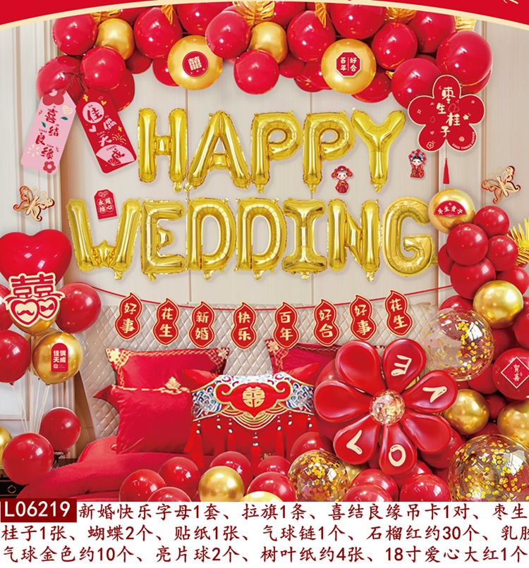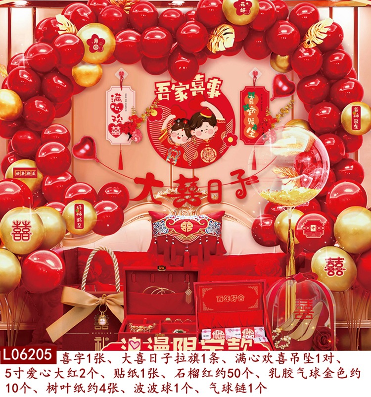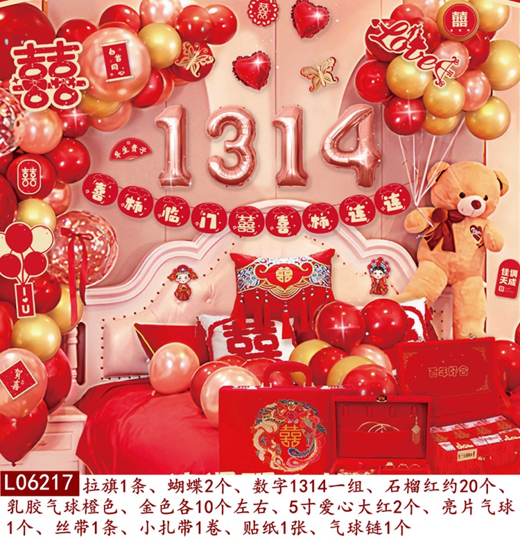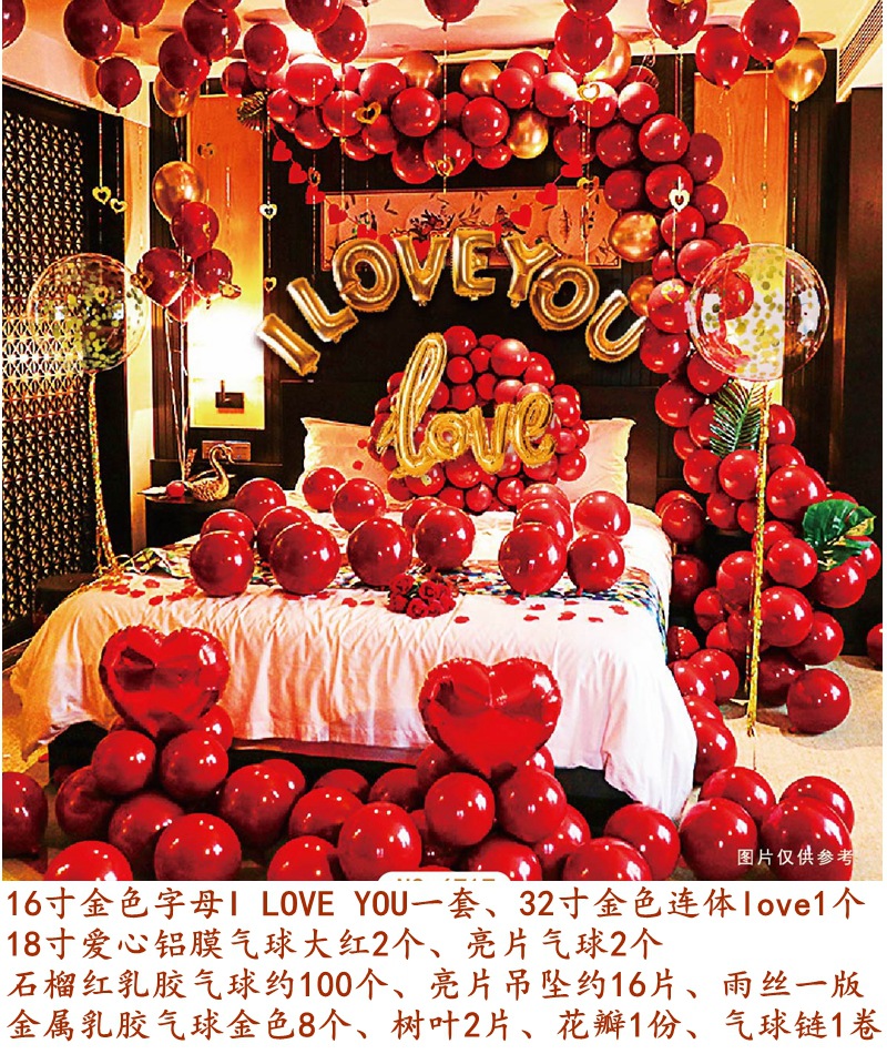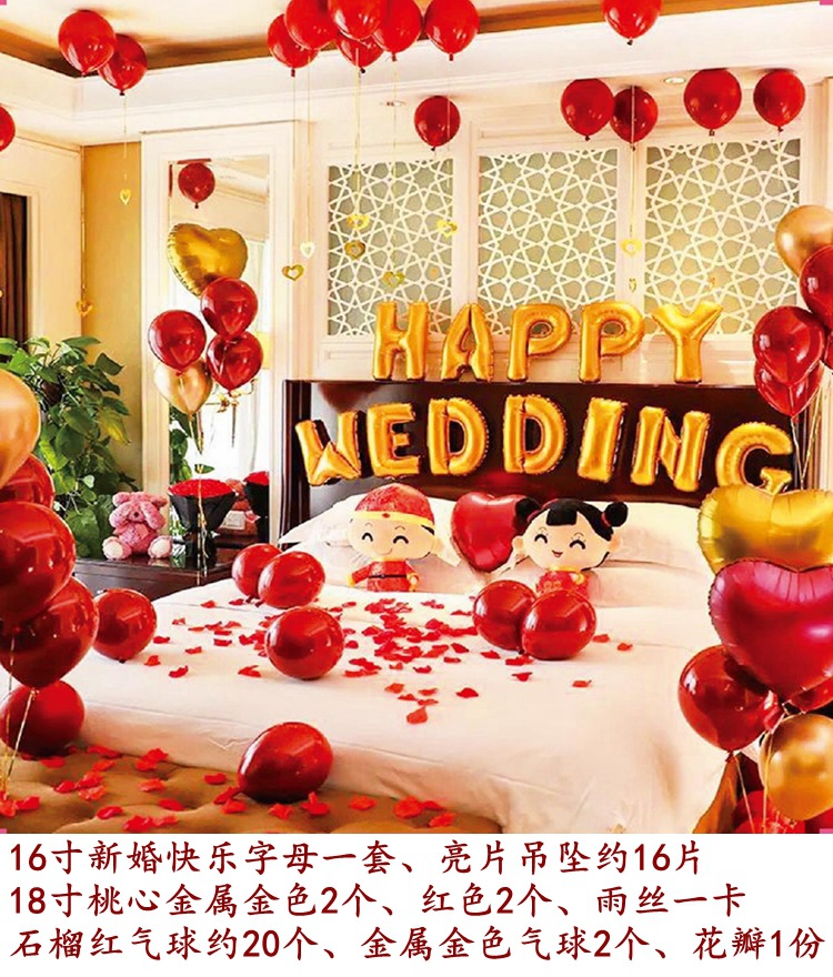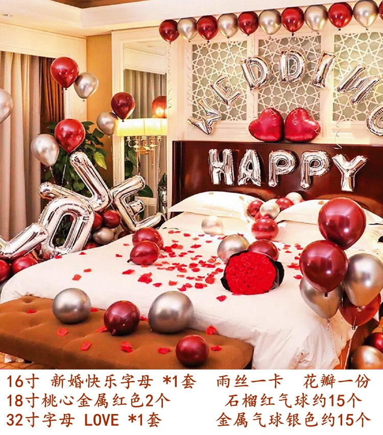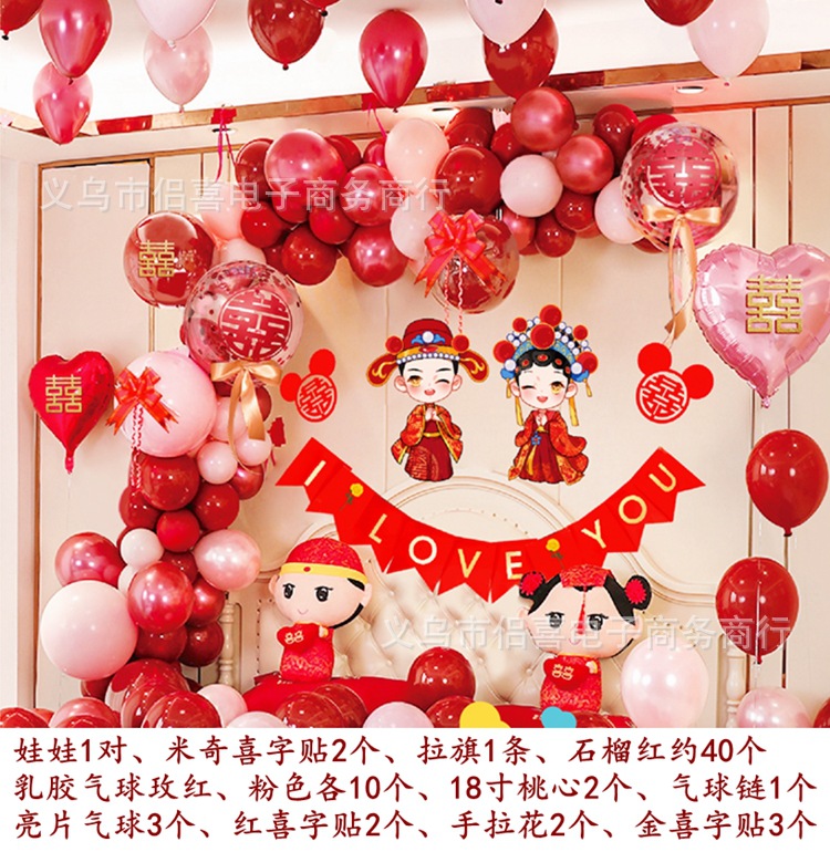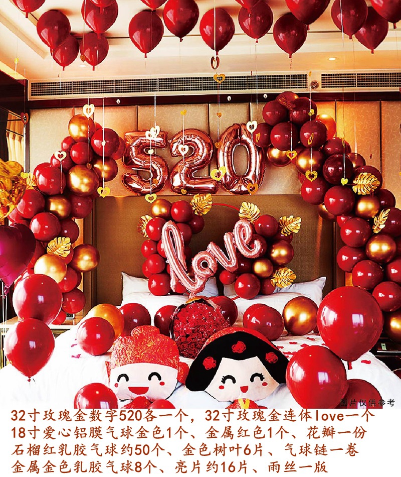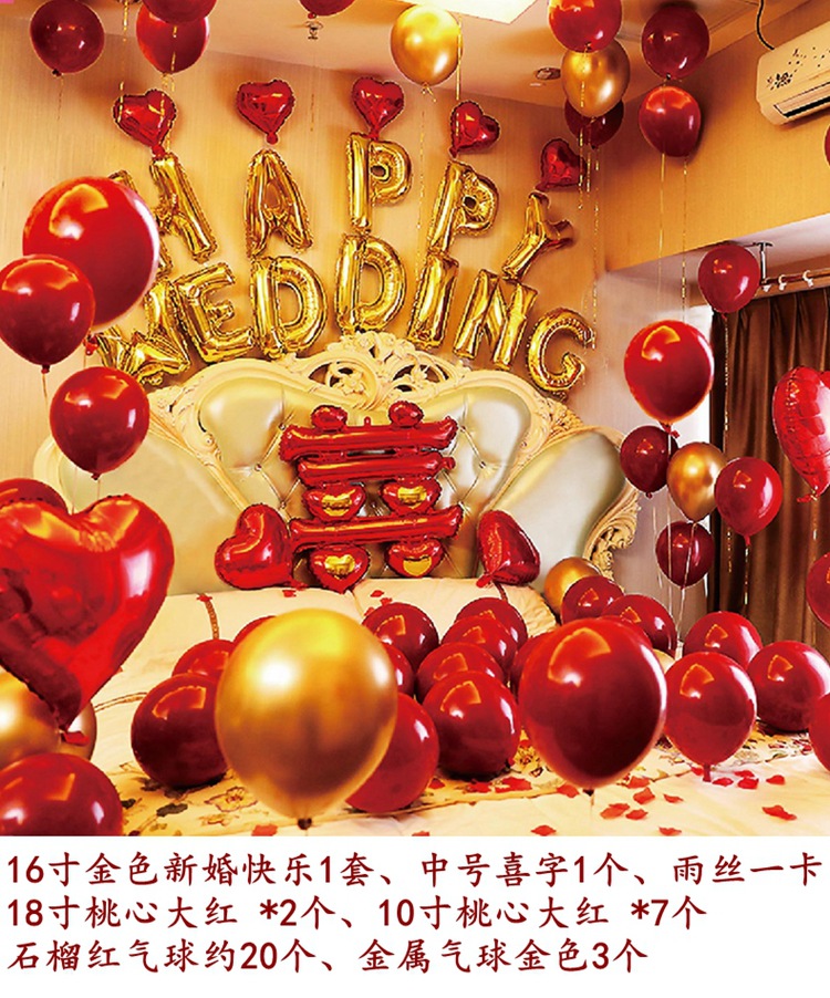 婚礼婚房布置结婚铝膜气球套装网红新房背景婚庆装饰乳胶气球套装