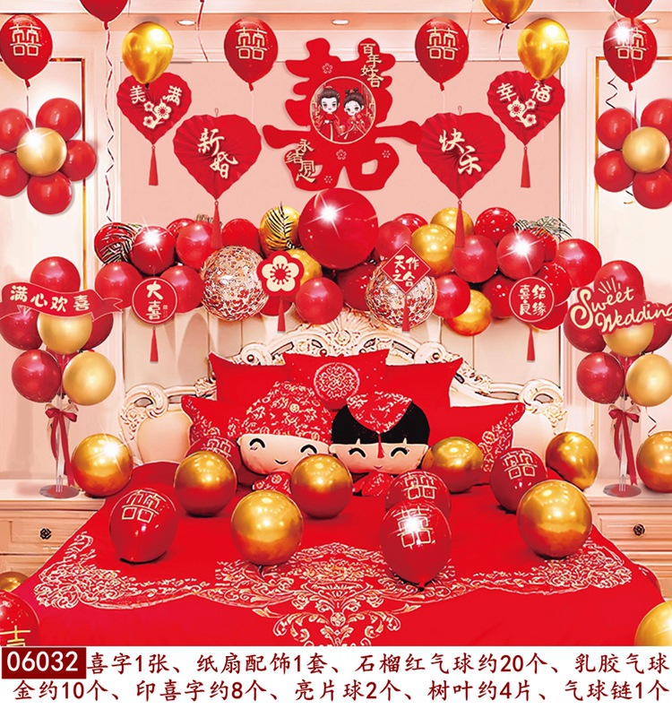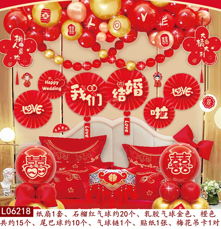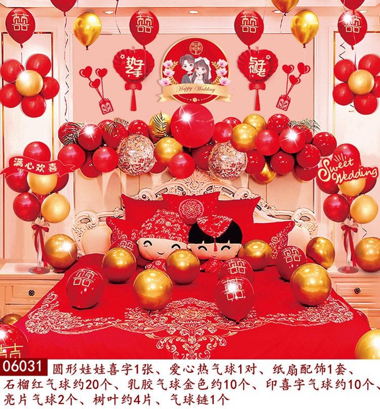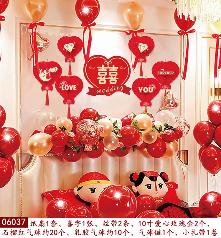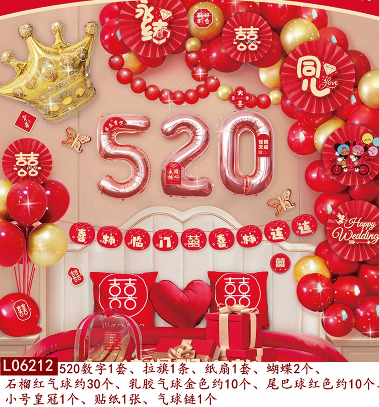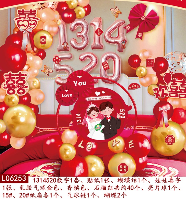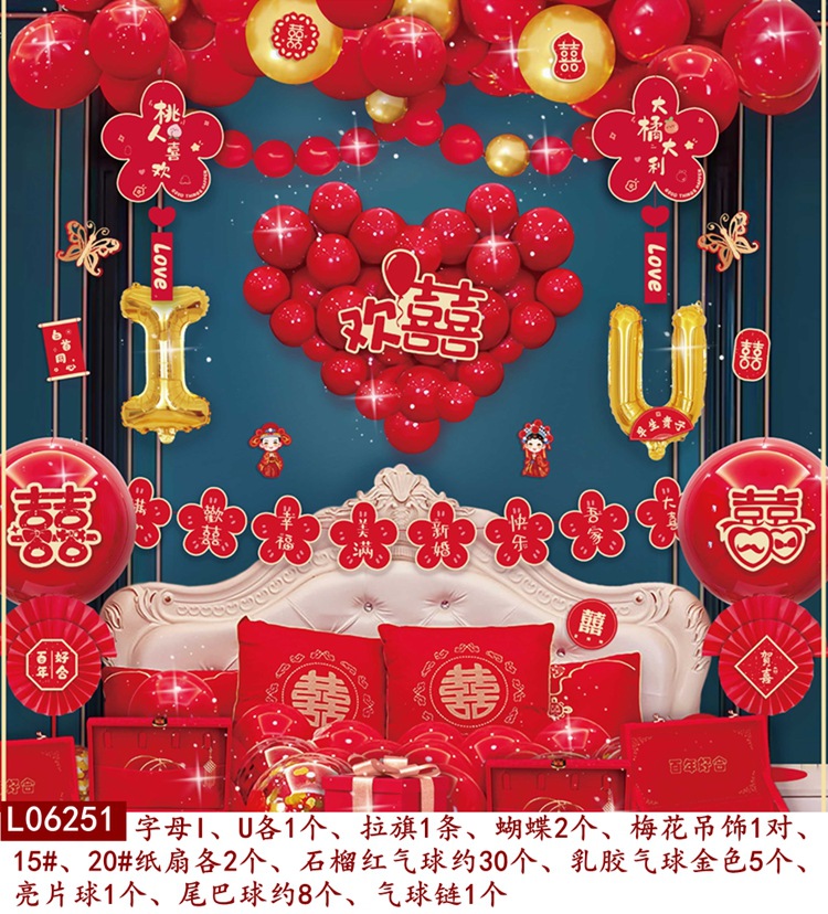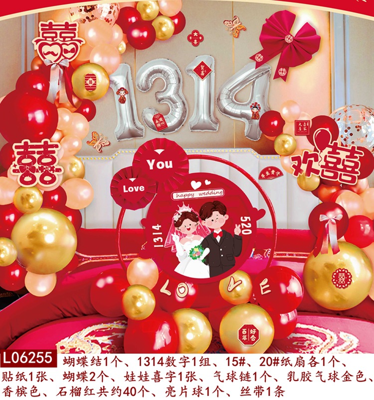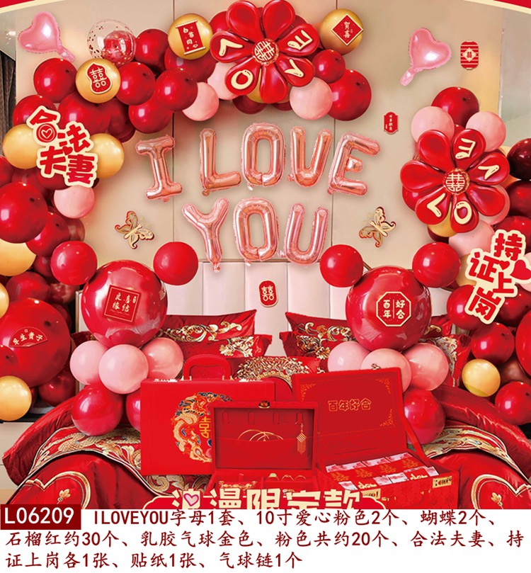 婚礼婚房布置结婚铝膜气球套装网红新房背景婚庆装饰乳胶气球套装