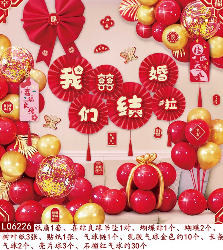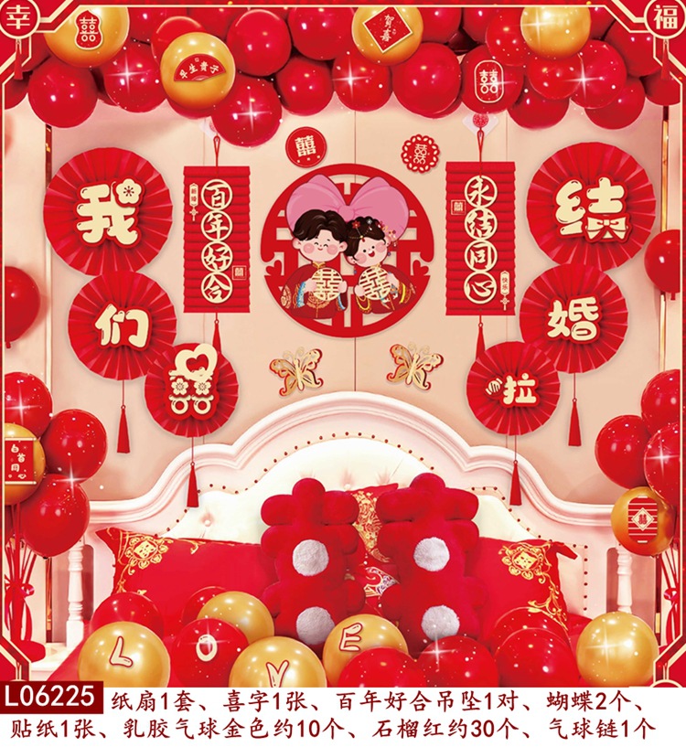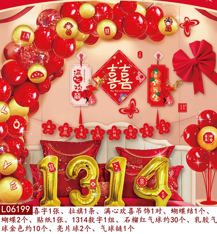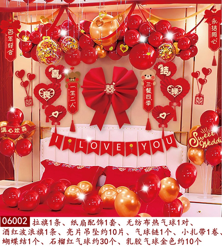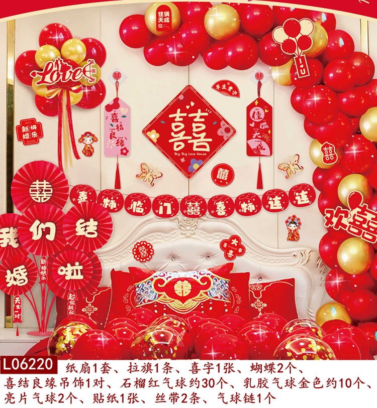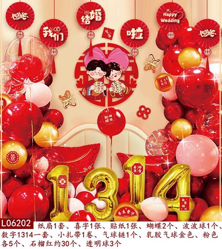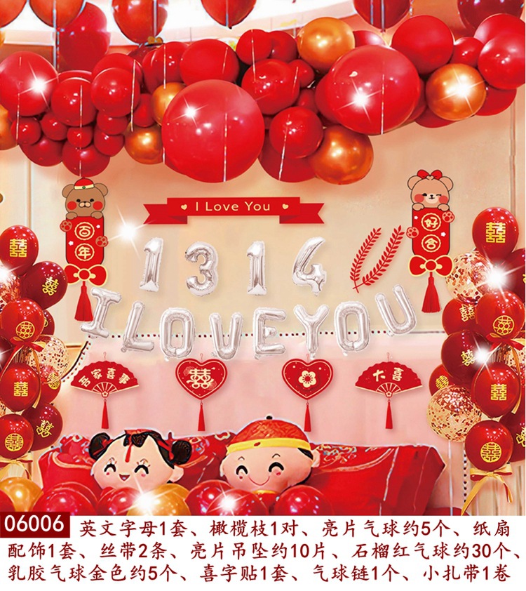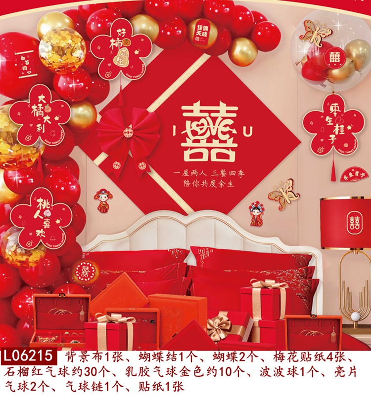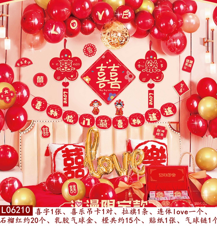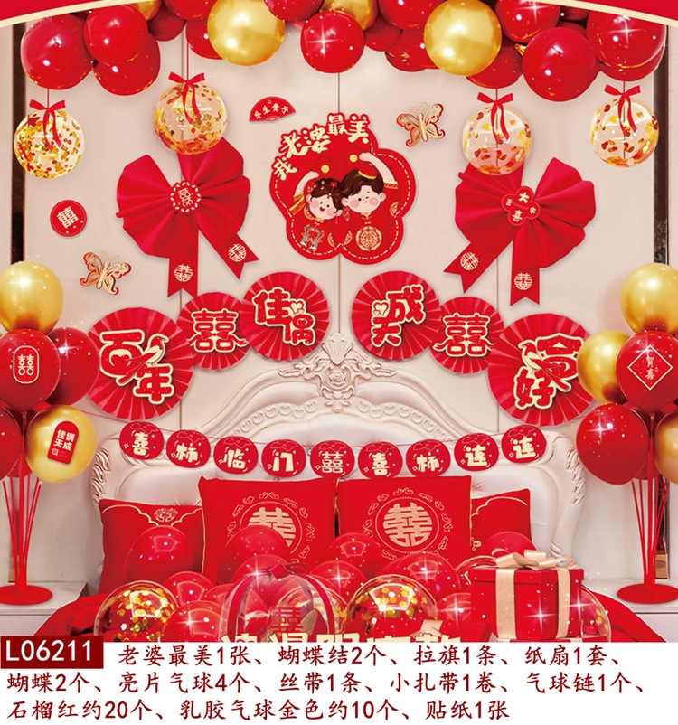 婚礼婚房布置结婚铝膜气球套装网红新房背景婚庆装饰乳胶气球套装
