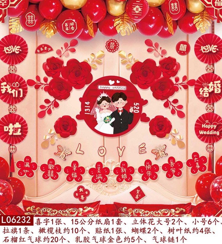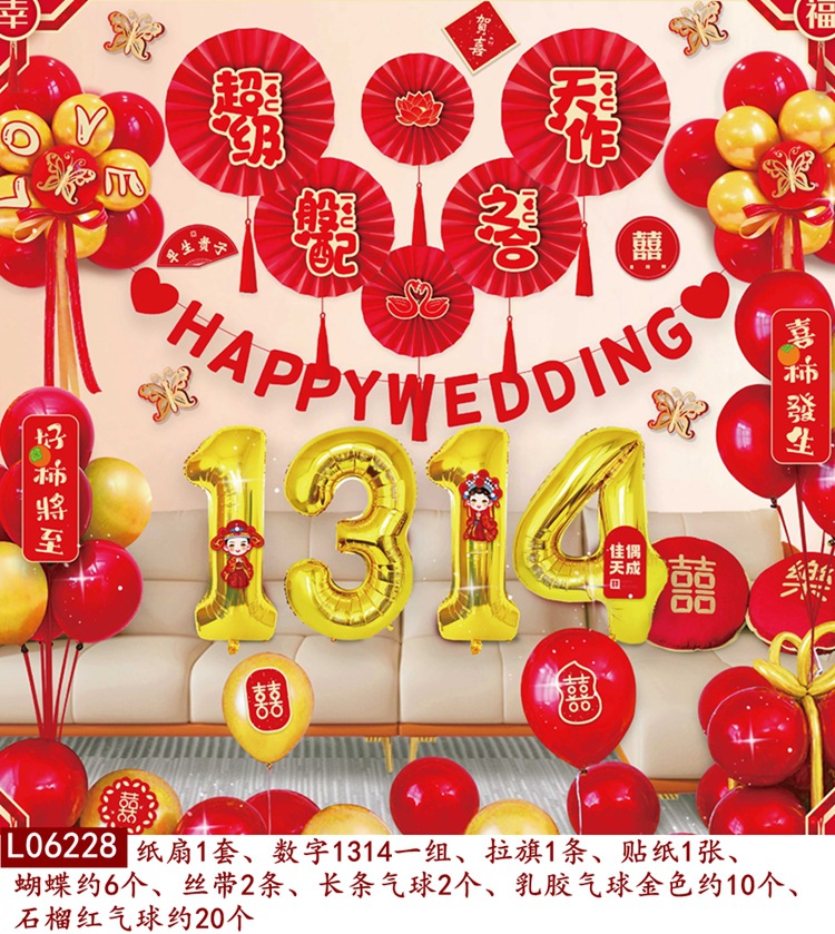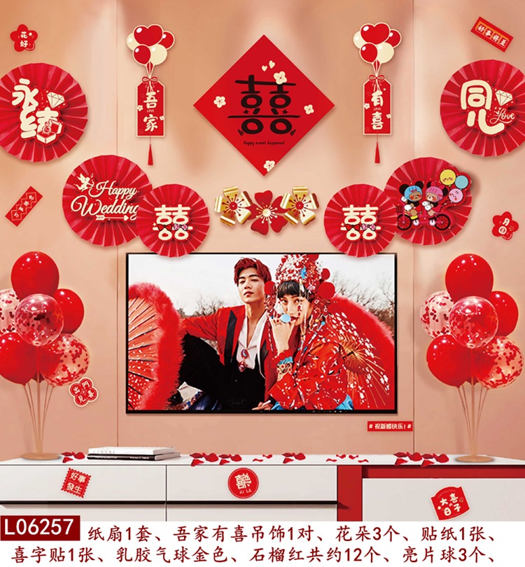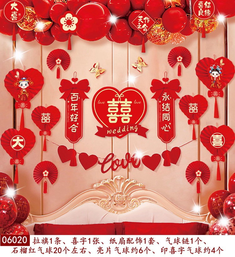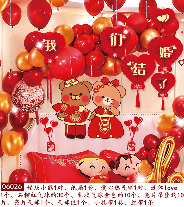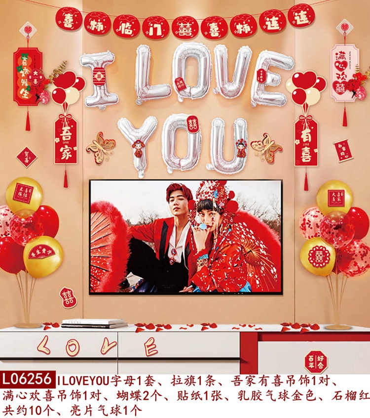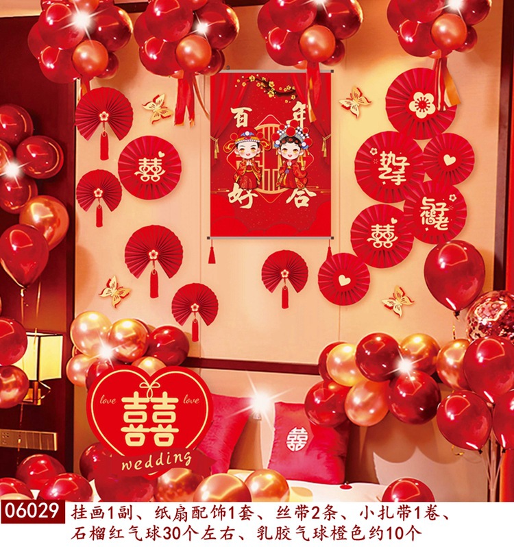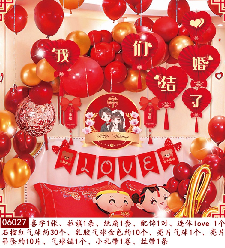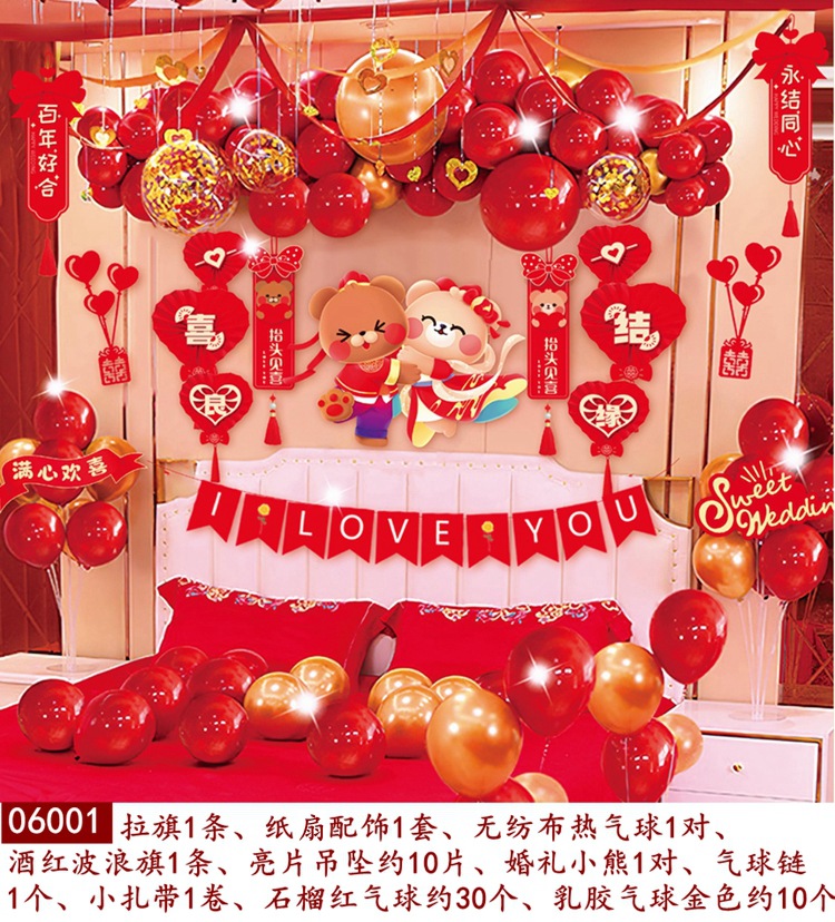 婚礼婚房布置结婚铝膜气球套装网红新房背景婚庆装饰乳胶气球套装