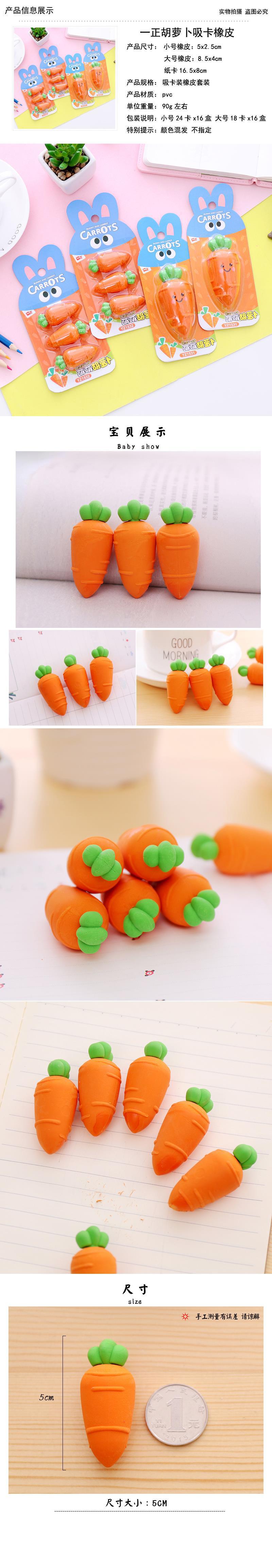 创意造型儿童宝宝胡萝卜橡皮檫可爱大小萌萌礼品玩具盒装橡皮文具