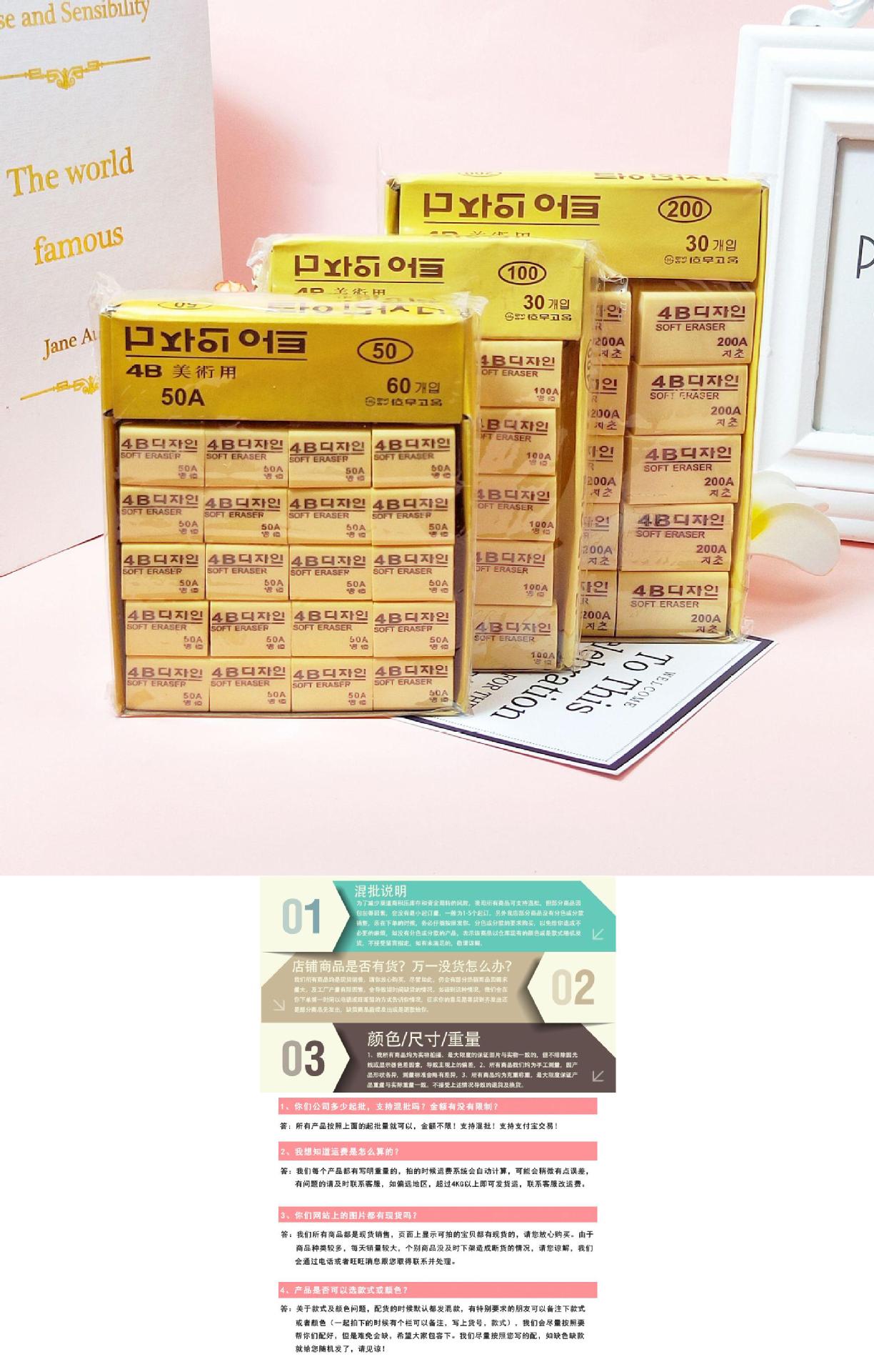 4B橡皮擦创意学生方形橡皮美术绘画专用铅笔擦考试办公橡皮檫