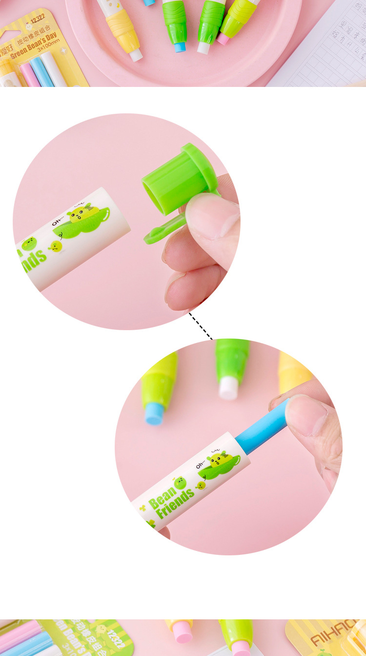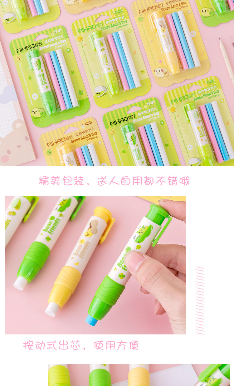文具 卡通按动橡皮组合儿童橡皮檫可爱橡皮擦绘图橡皮T