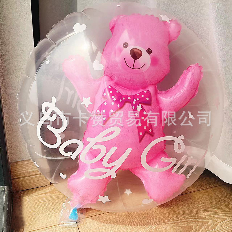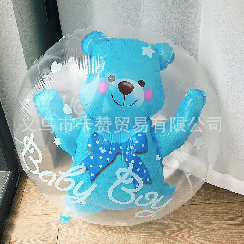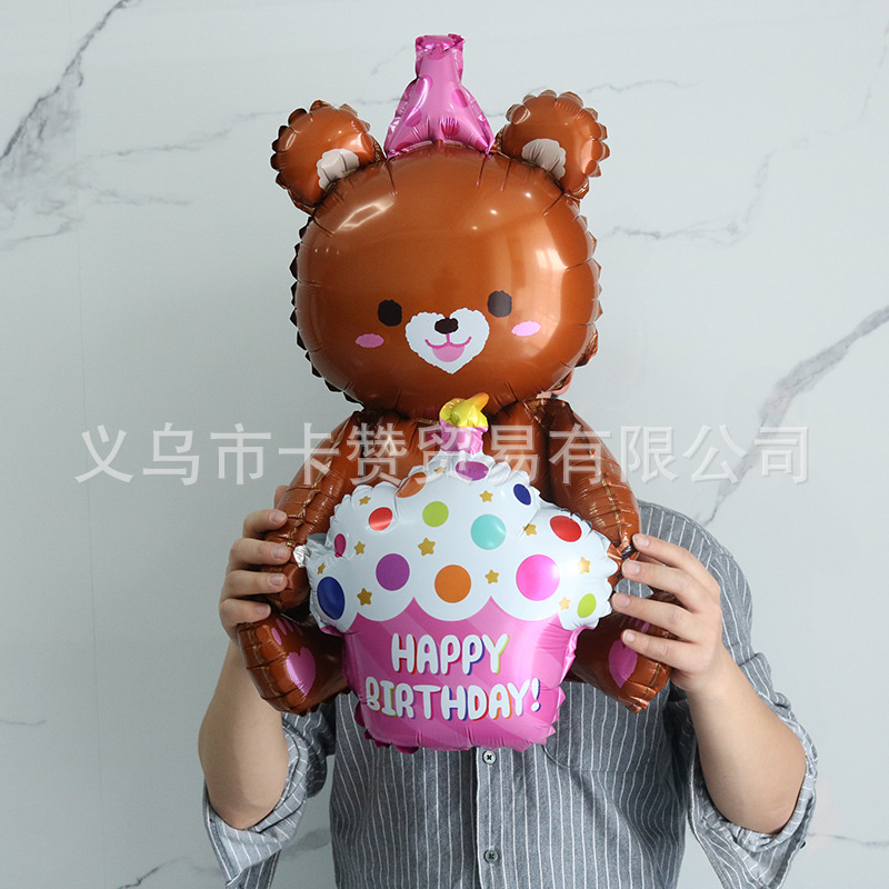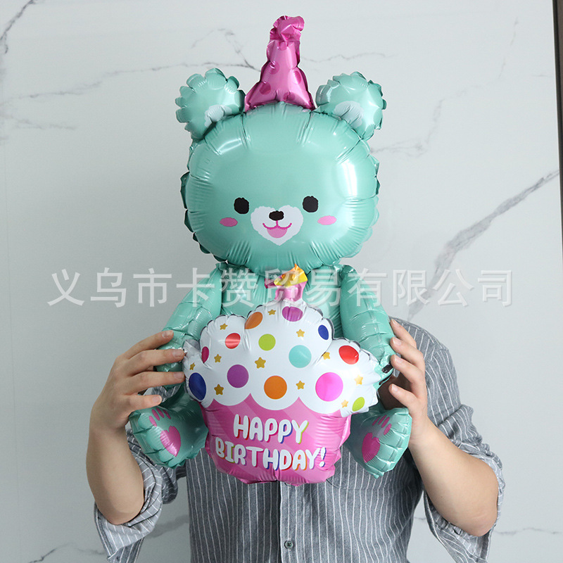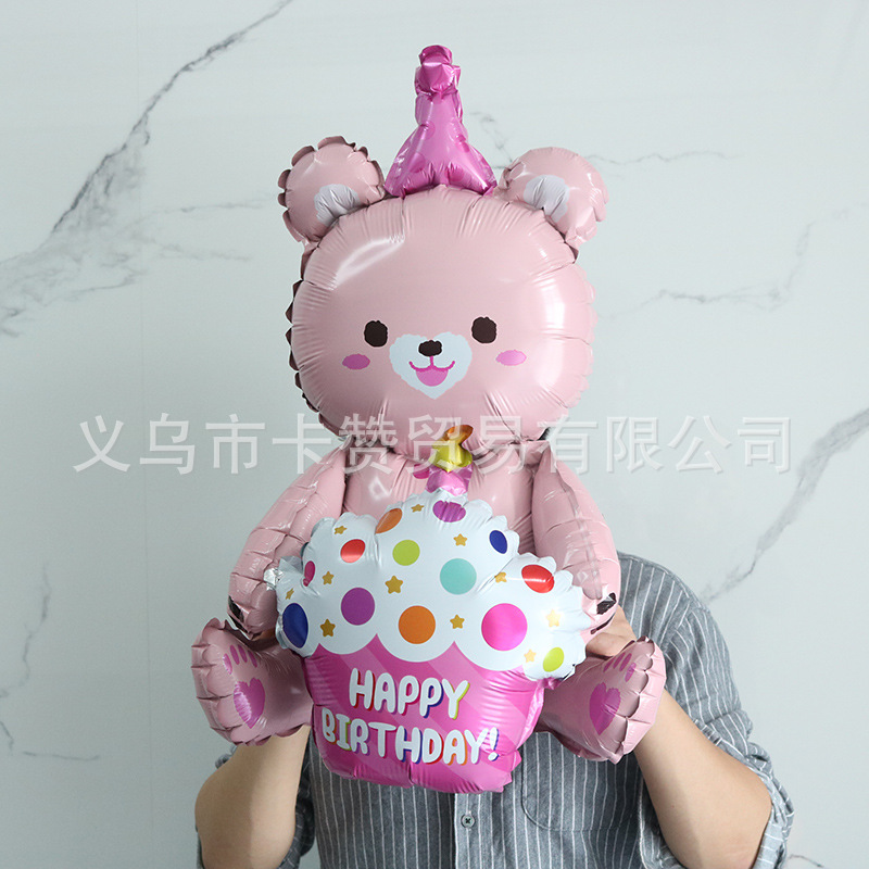 跨境新款抱蛋糕小熊铝膜气球宝宝生日派对装饰布置魔法坐熊球批发