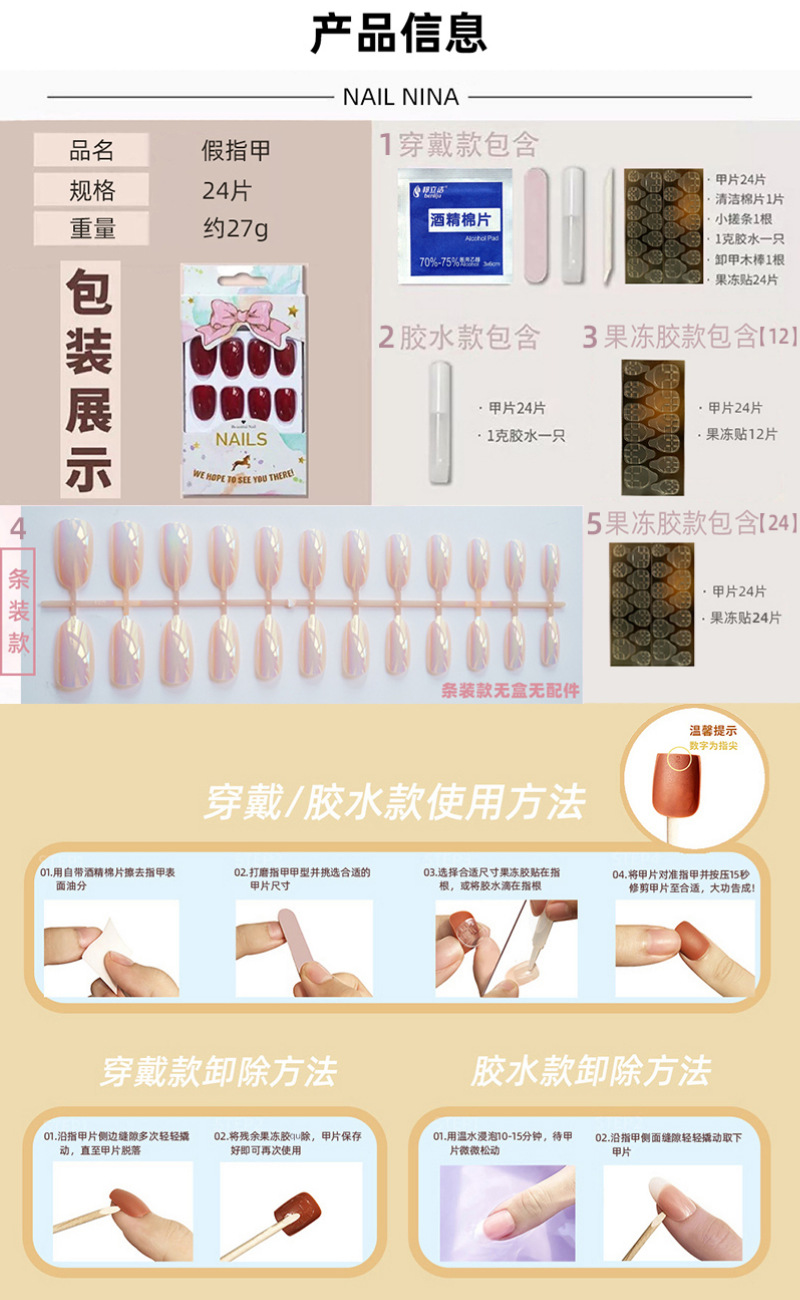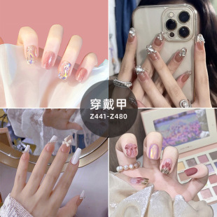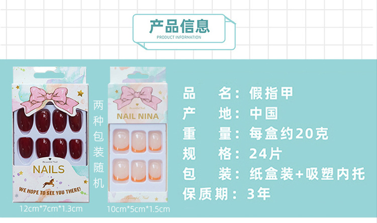 奈妮娜穿戴美甲假指甲片贴成品甲片磨砂芭蕾美甲片法式贴片胶水