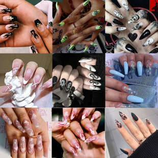 指甲贴美片穿戴甲甲片欧美穿戴甲成品长款可拆卸美甲假指甲片批发