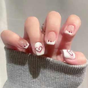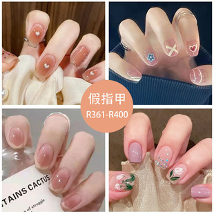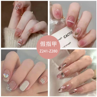 短款穿戴甲黑色棋盘格雾霾蓝成品假指甲可拆卸指甲贴美甲甲片nail