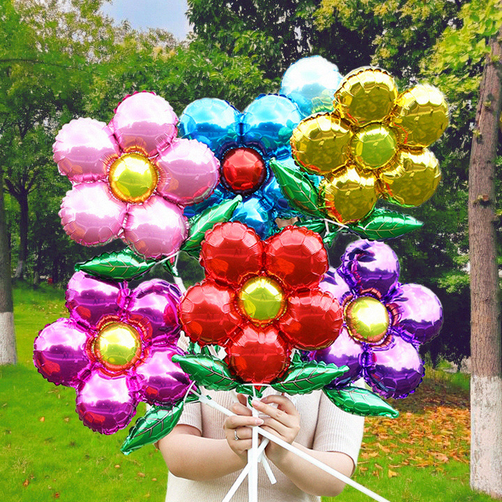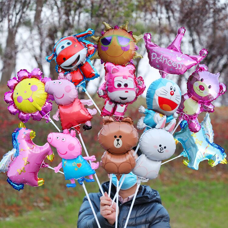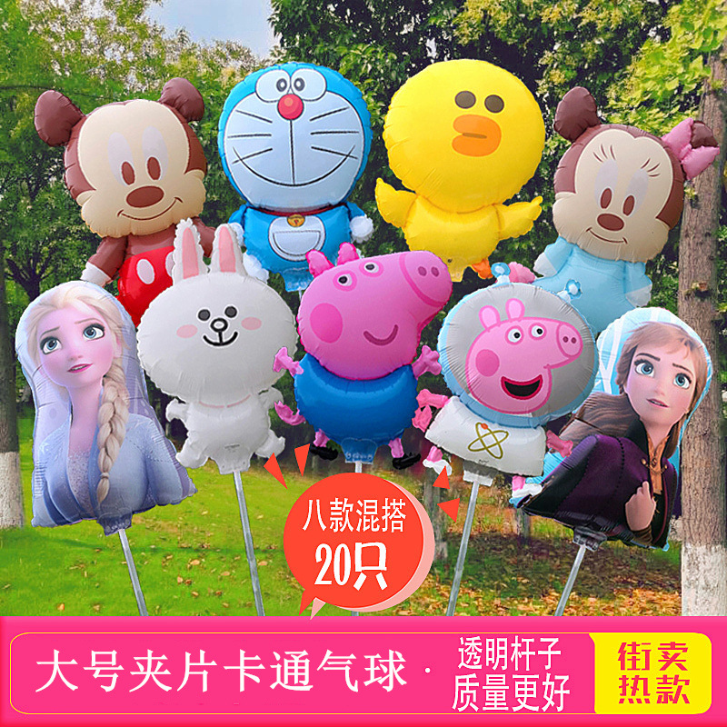 放地落地街卖大号卡通带杆铝膜气球 展示支架管子底座便携可拆卸