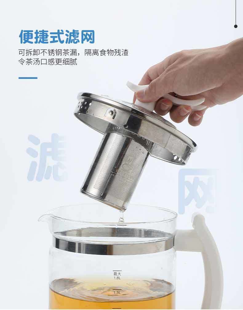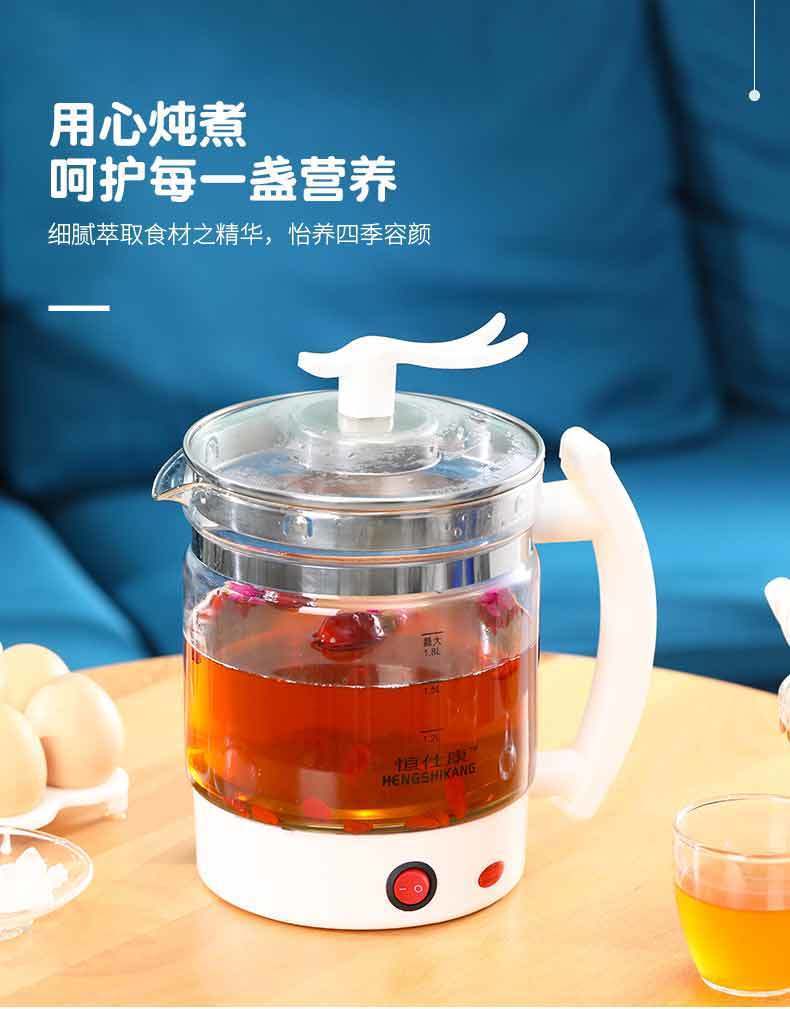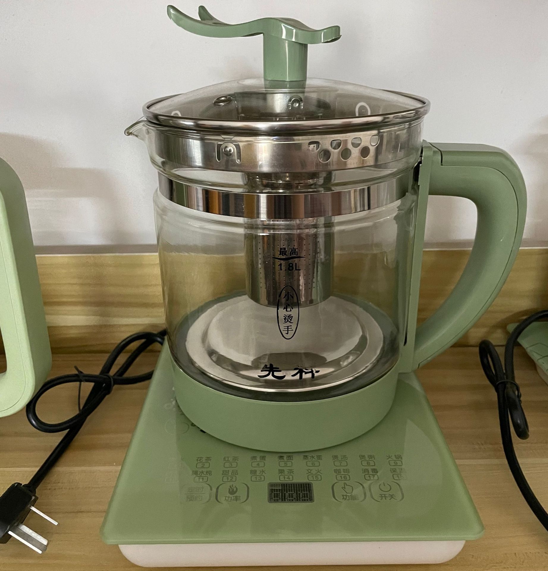 先科养生壶家用1.8L大容量加厚玻璃多功能一体电热水壶养生壶批发